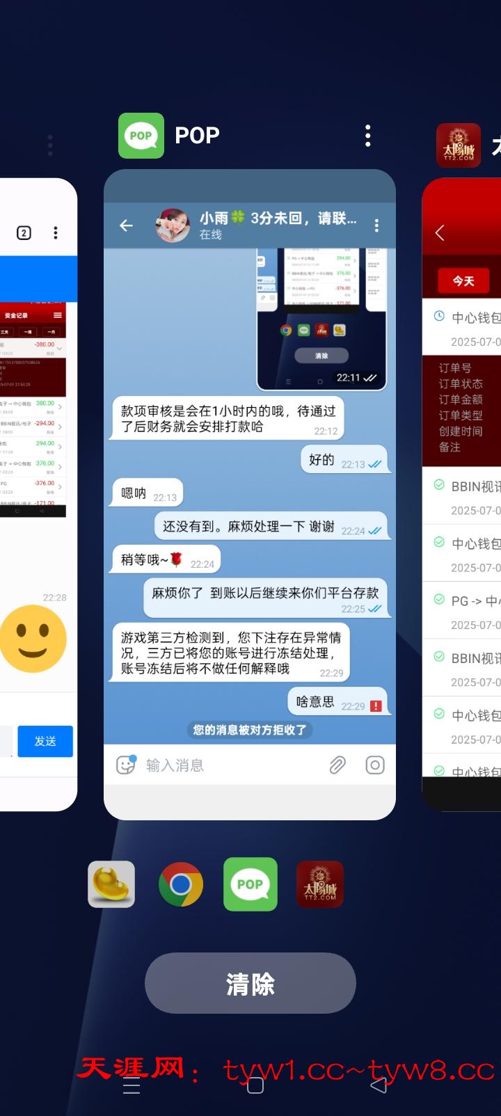 黑太赚钱1小时前被黑,380 提款叫我加pop 加了核实以后说注单异常我去她妈逼。把我pop也疯掉了