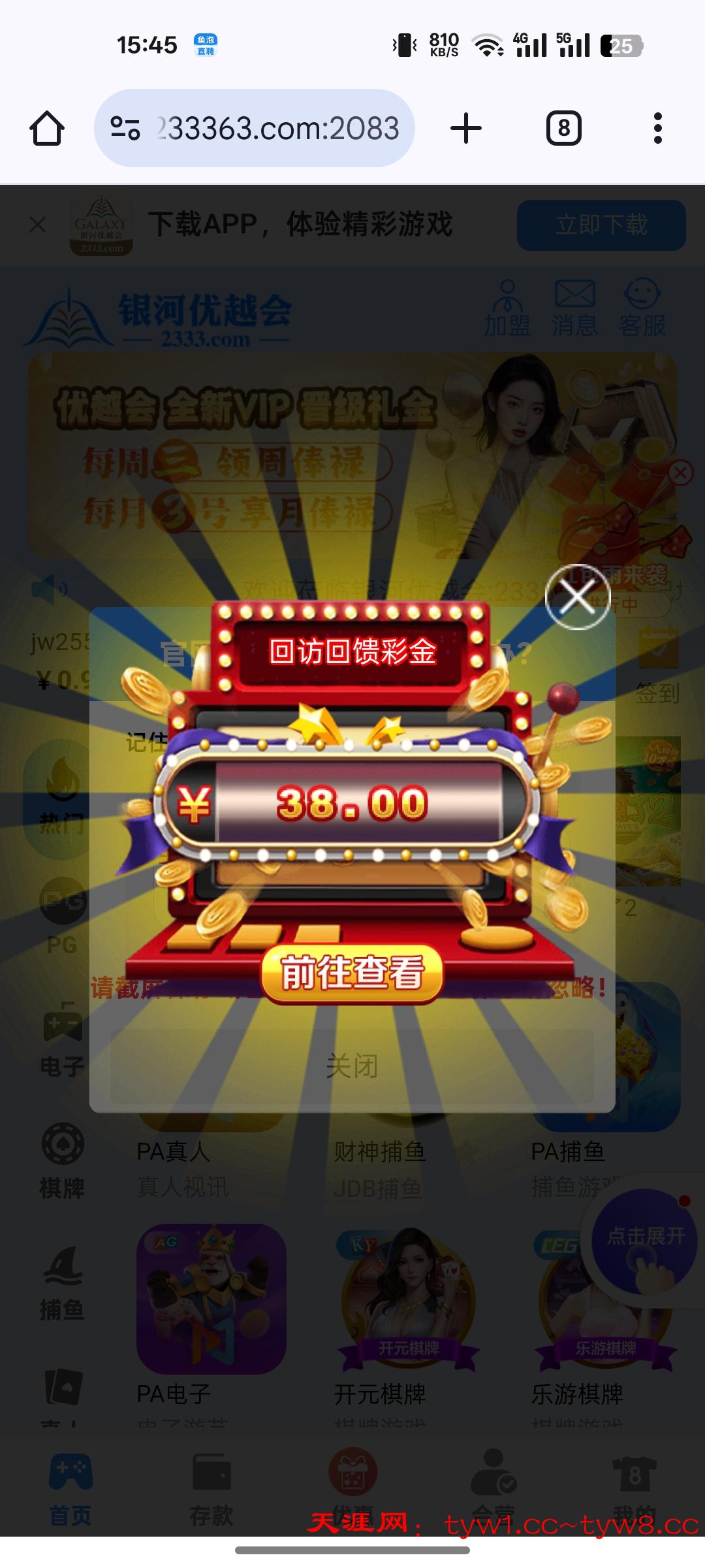 部分老用户登录有回访彩金,充值过的去看看刚刚领取到38