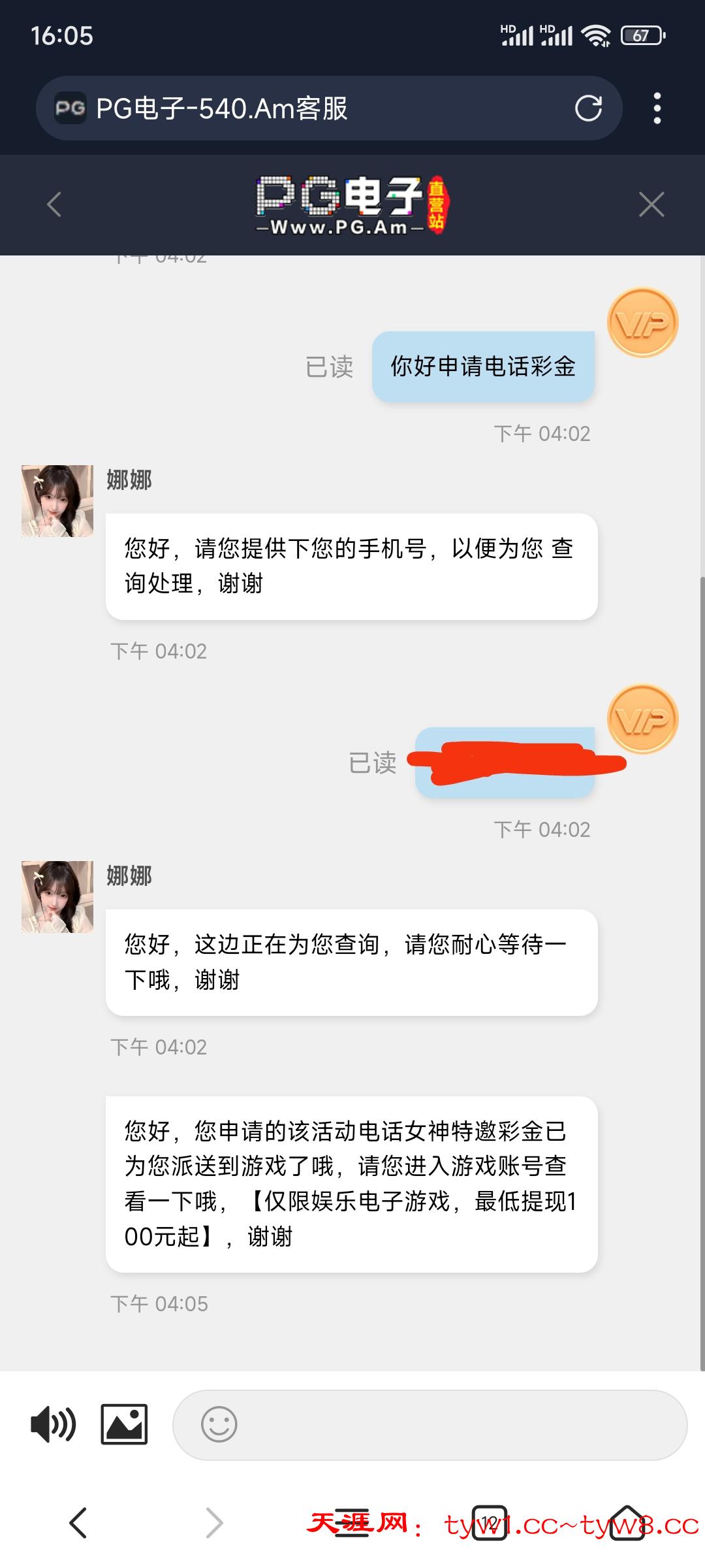 直接去申请的电话彩金,要发手机号