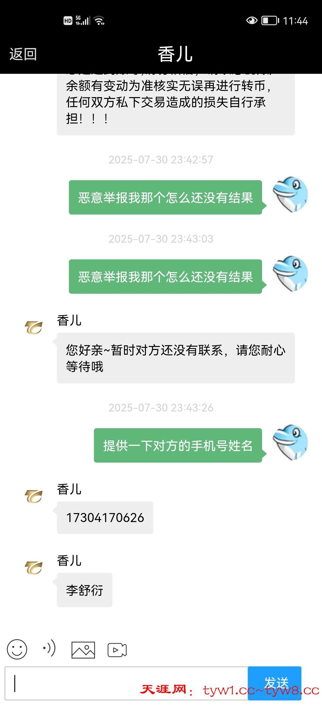电话姓名17304170626李舒衍。有没有老哥遇见这种人的我出1k分已经交易成功了,后面不知道他是不是挂逼了,来举报我想要回钱什么人都有,老哥们