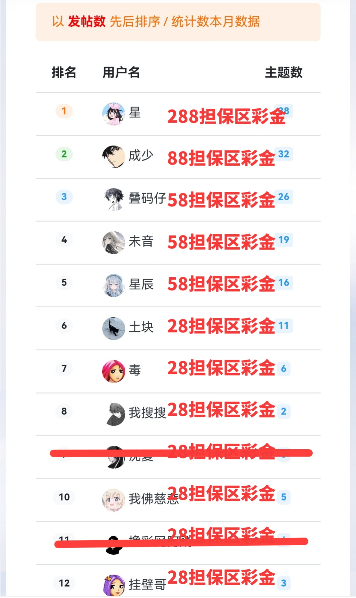每个月发帖均有排行奖励/认真积极发帖都不会少你