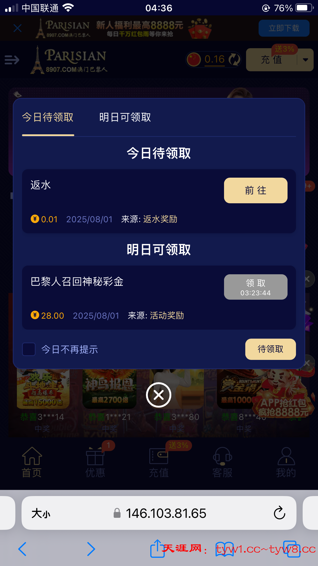 回馈彩金 有号的可以登上去看看
