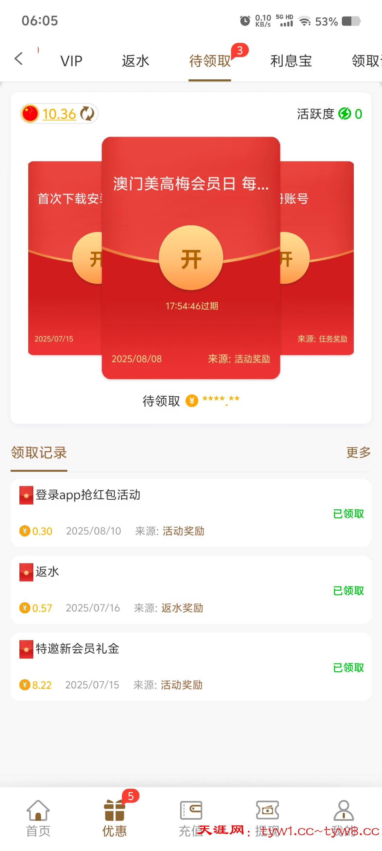 您有0.00058万元待领取