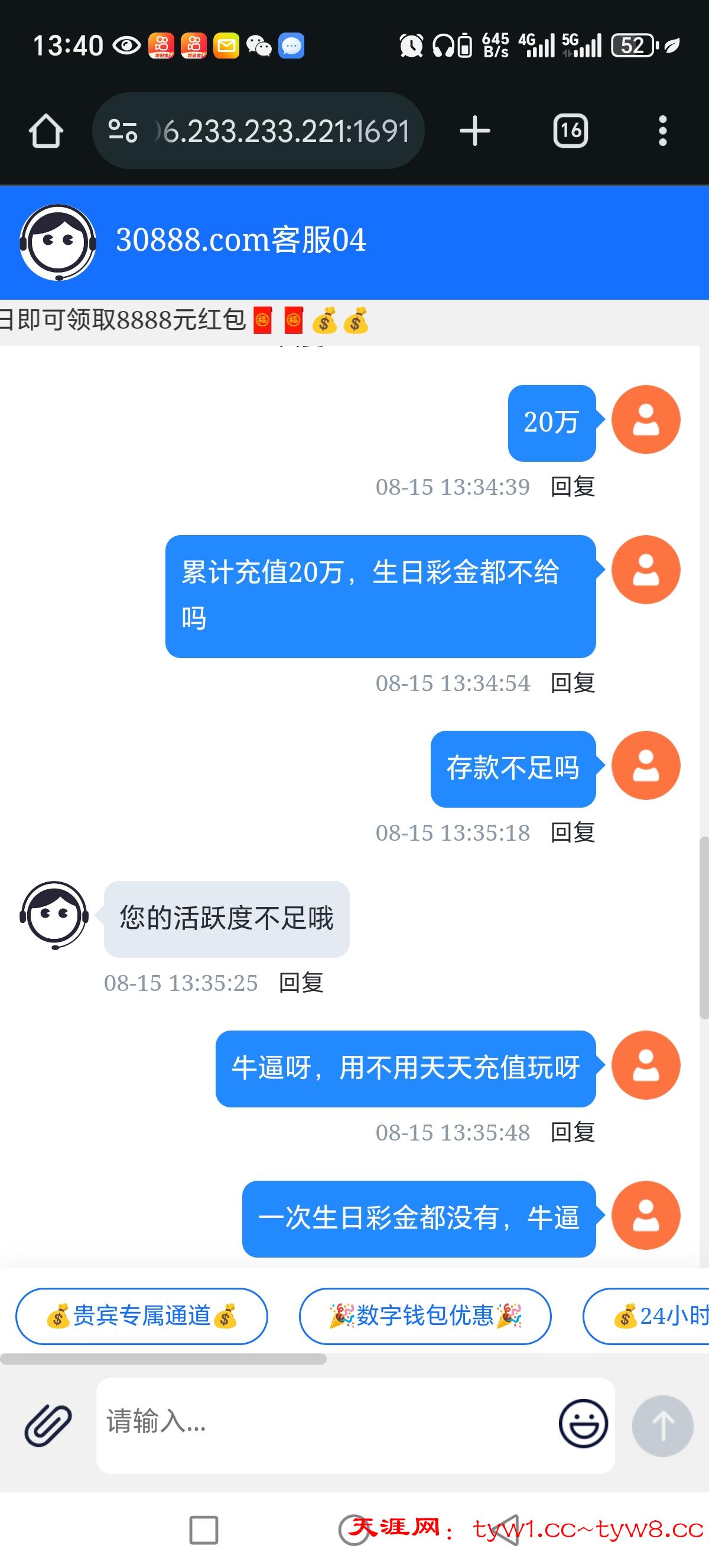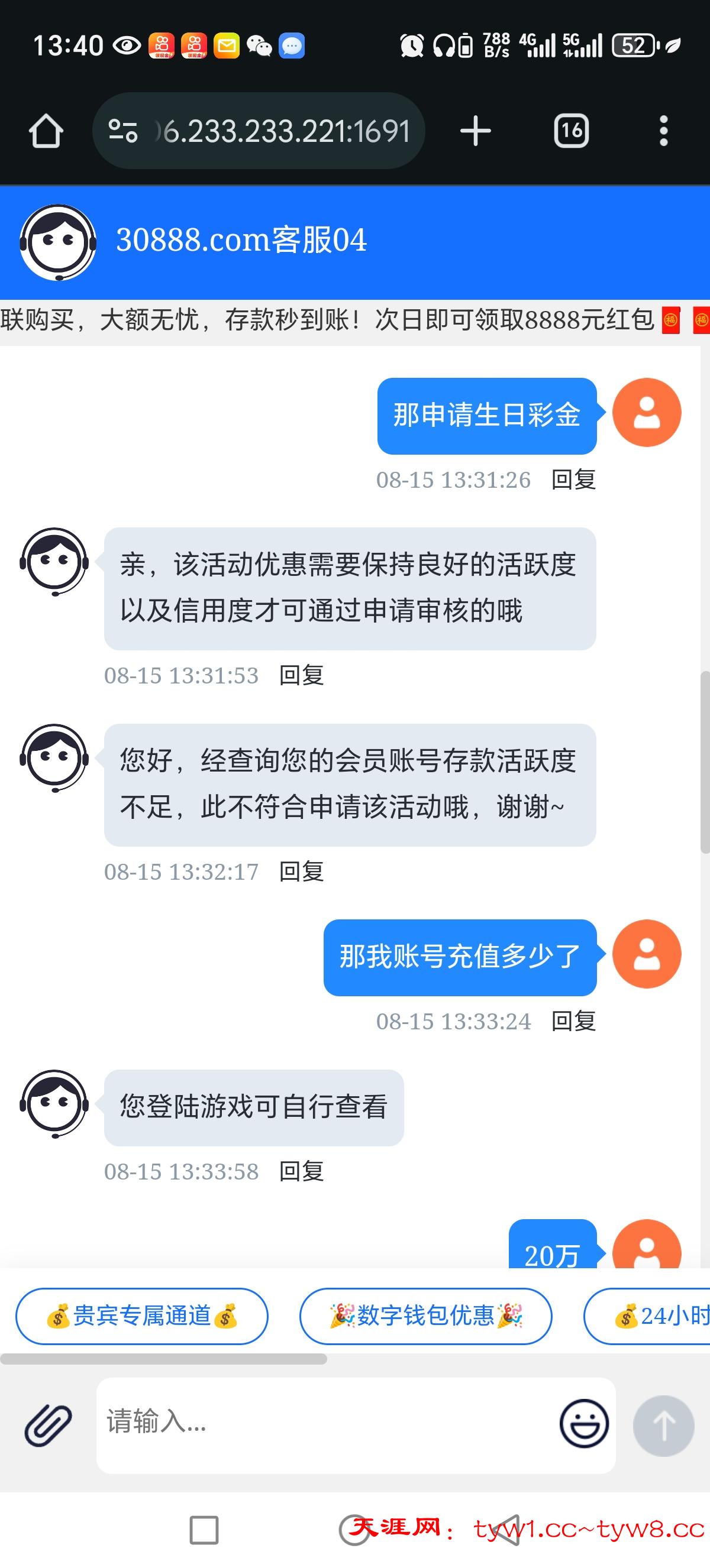 这个平台大家不要去玩,累计充值20万申请个生日彩金,说我账号活跃度不足,一直找借口