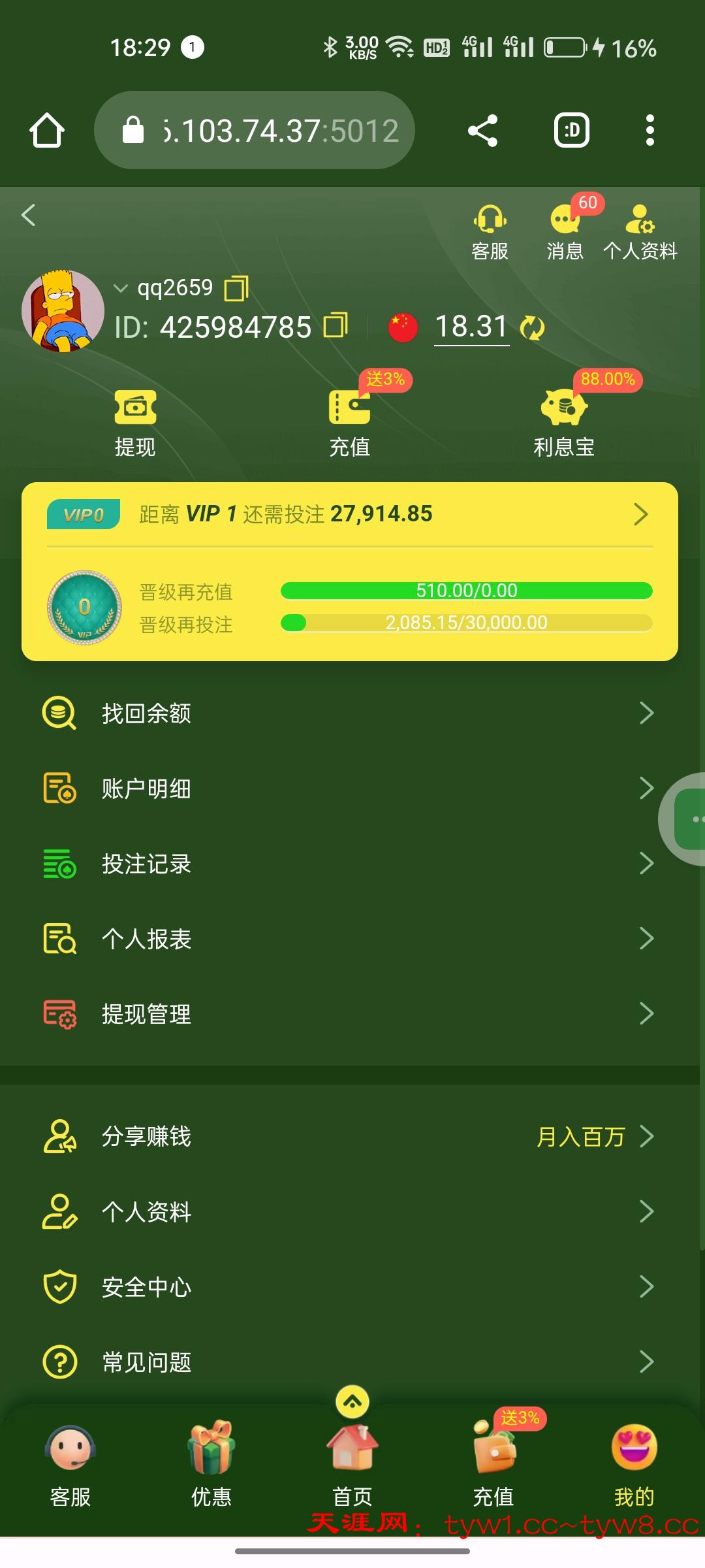 昨天才注册,今天冲一百五,提388黑了