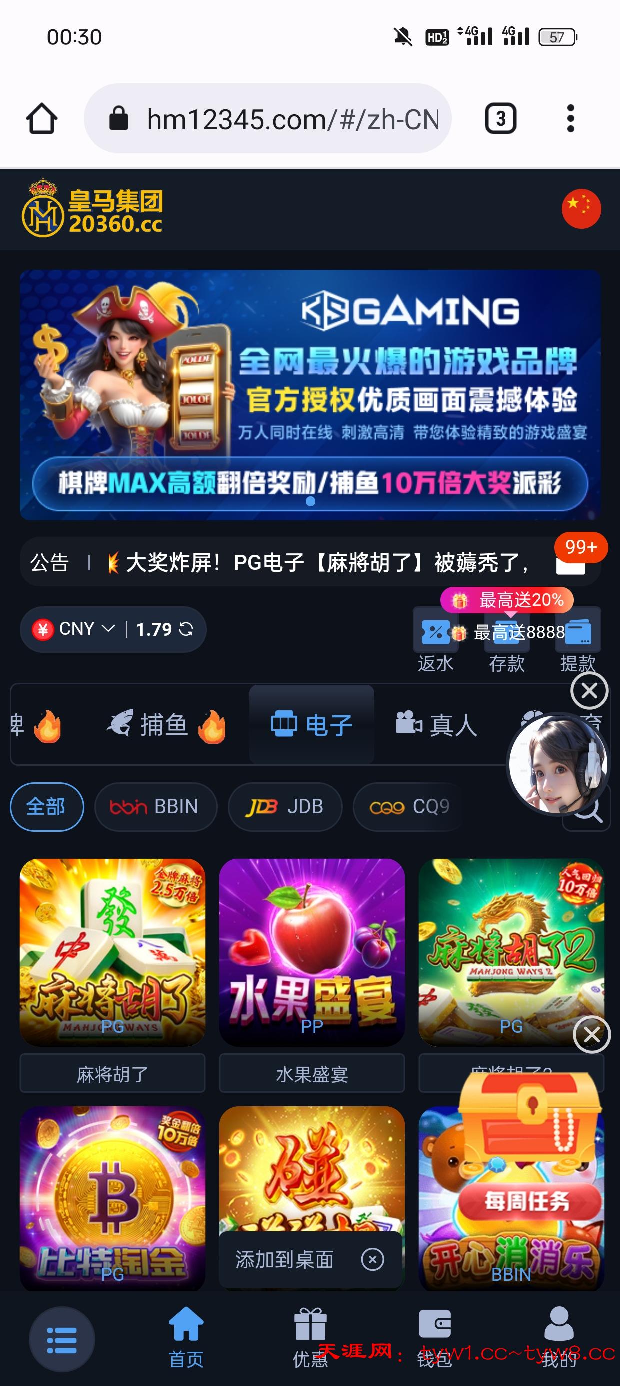 你PG验证了,你只要在论坛发个图给客服看,就有8.88