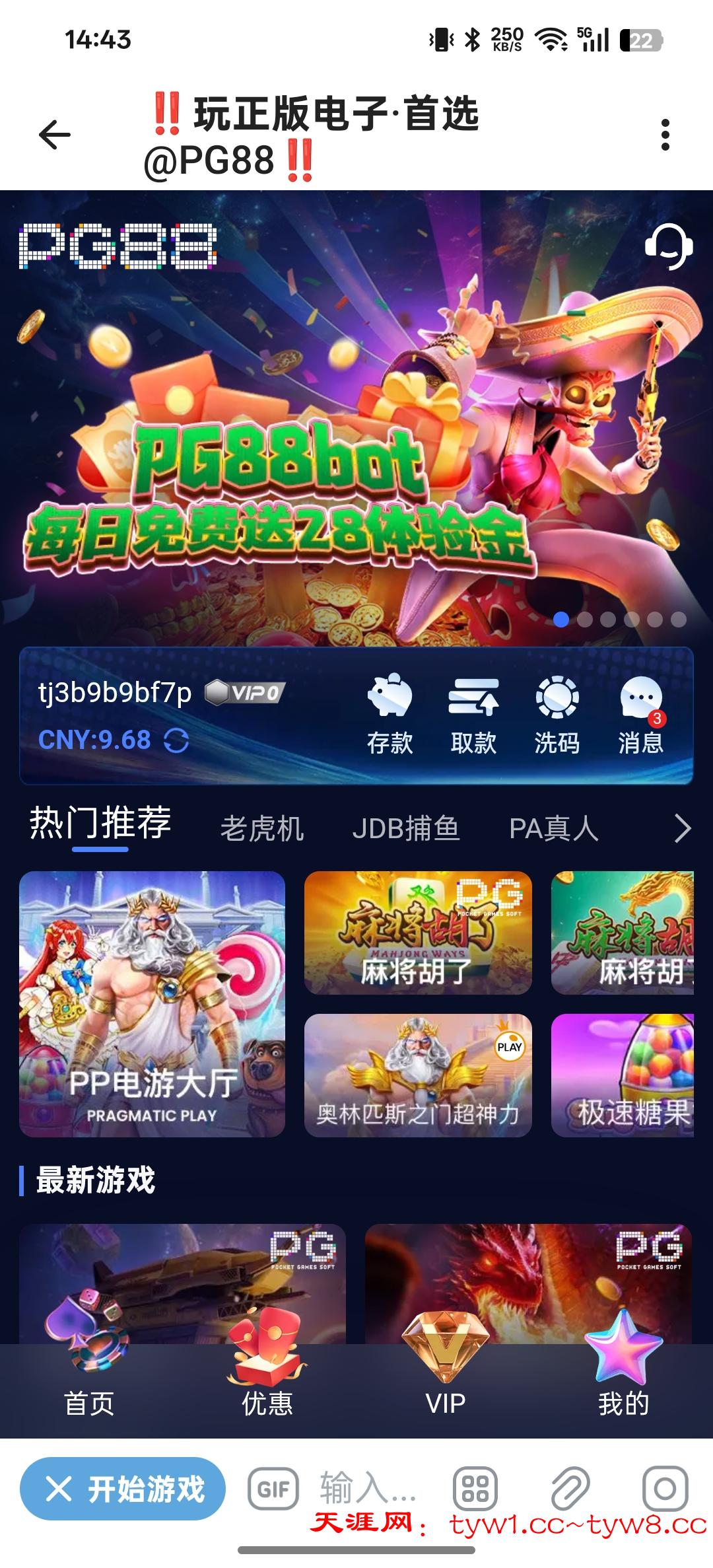 PG88红包9.44 2000个 绑定U流水地址 现金红包1倍水,限定提款100-288元 点击领取