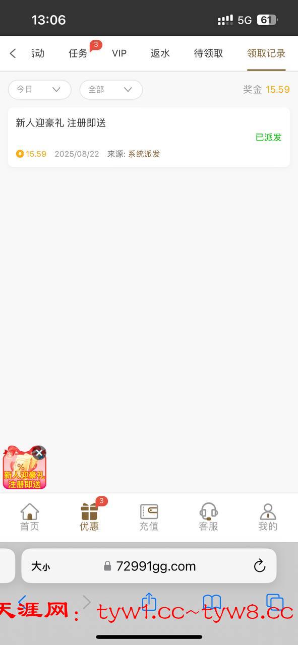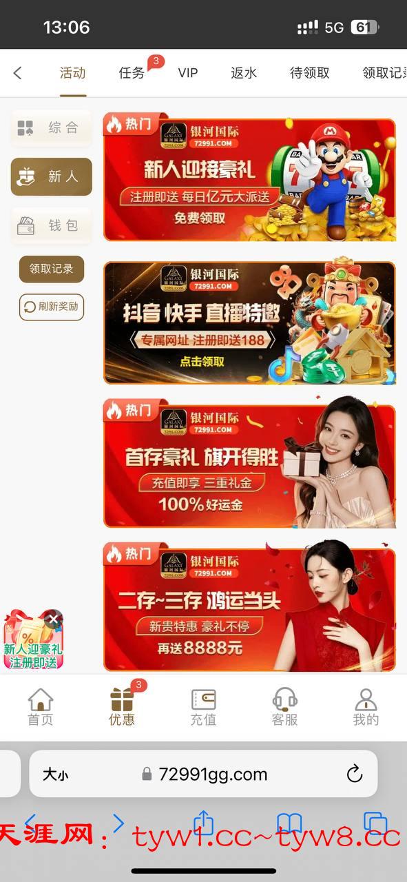 注册活动里面找到新人验证彩金,新活动