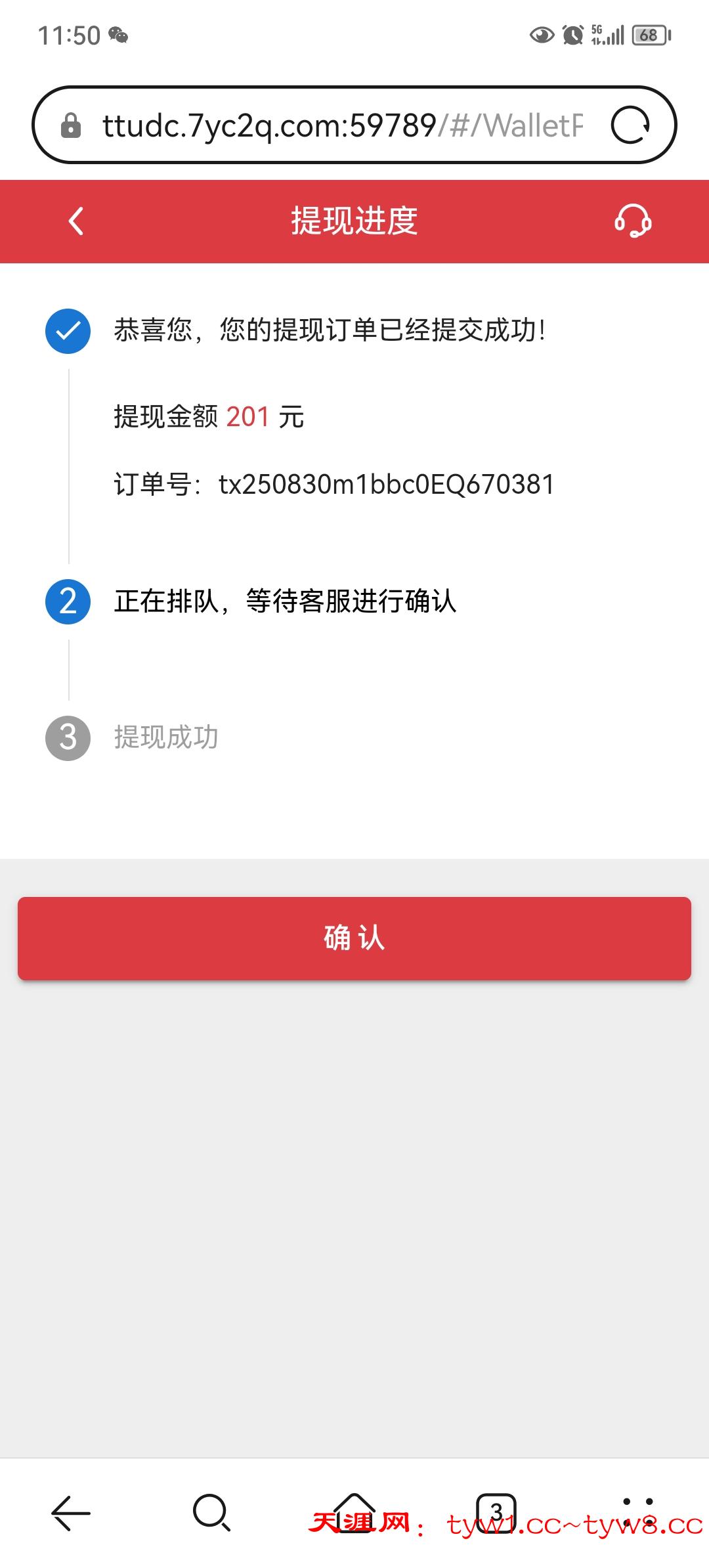 提现一百到账