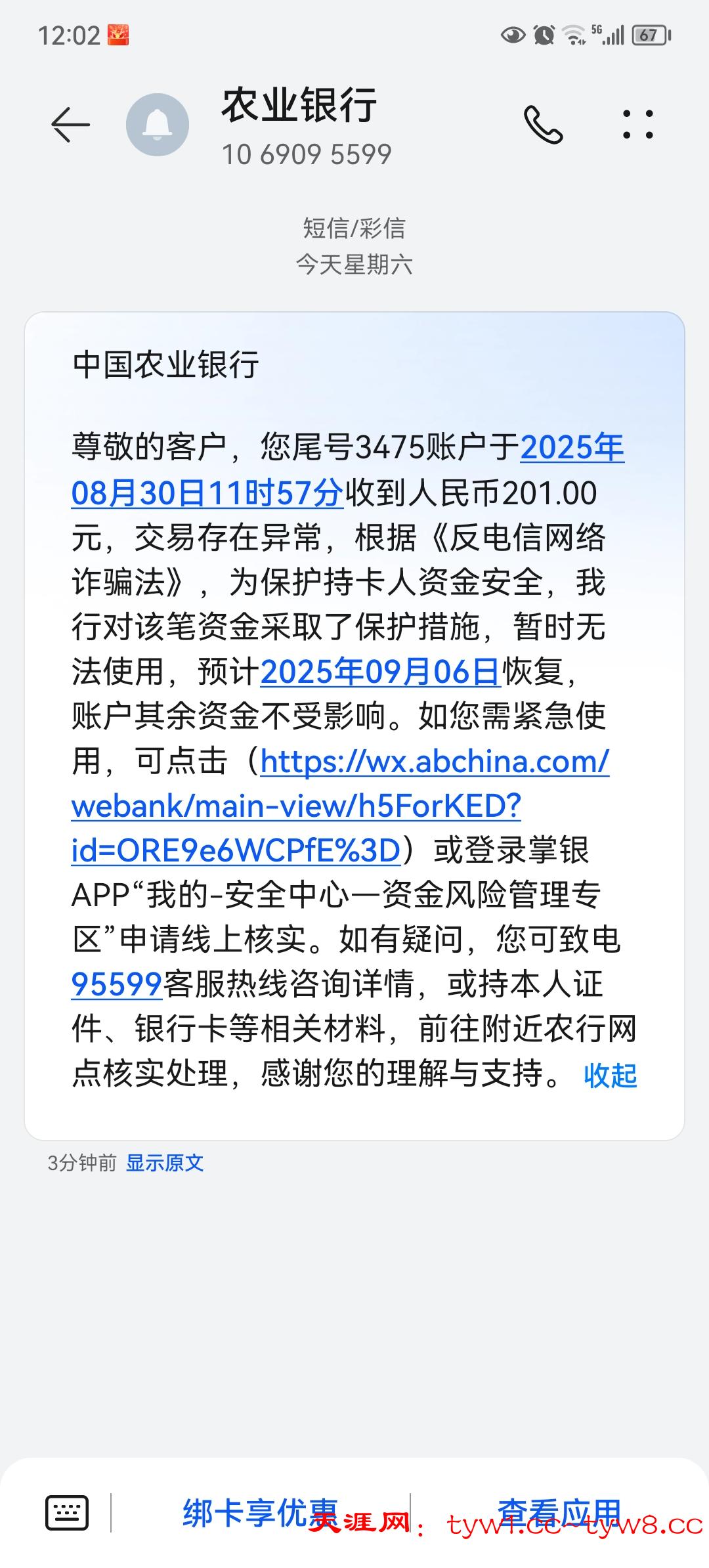 草,收到到钱就发这种信息,到9月6号才能用