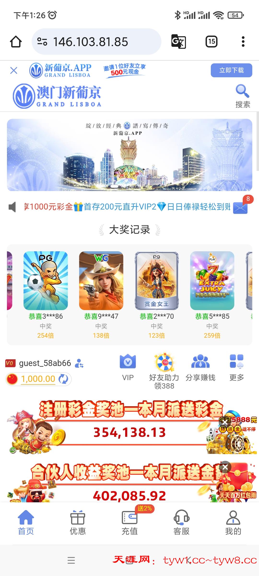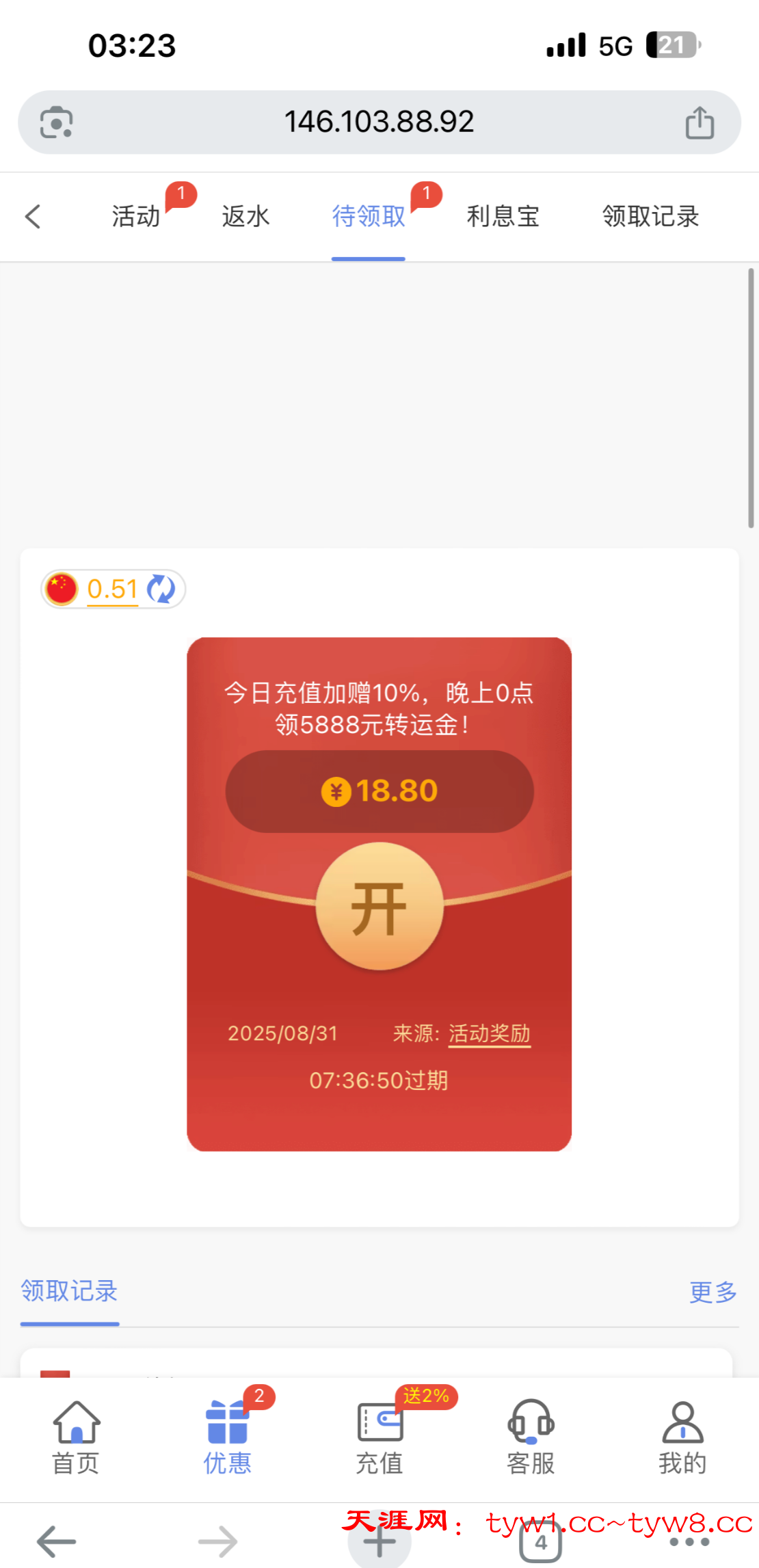 之前短信特邀注册的,然后充值过100,今天月初无聊登了好几个网站,发现这个网站有18.88,有号的去看一下,还出款了400