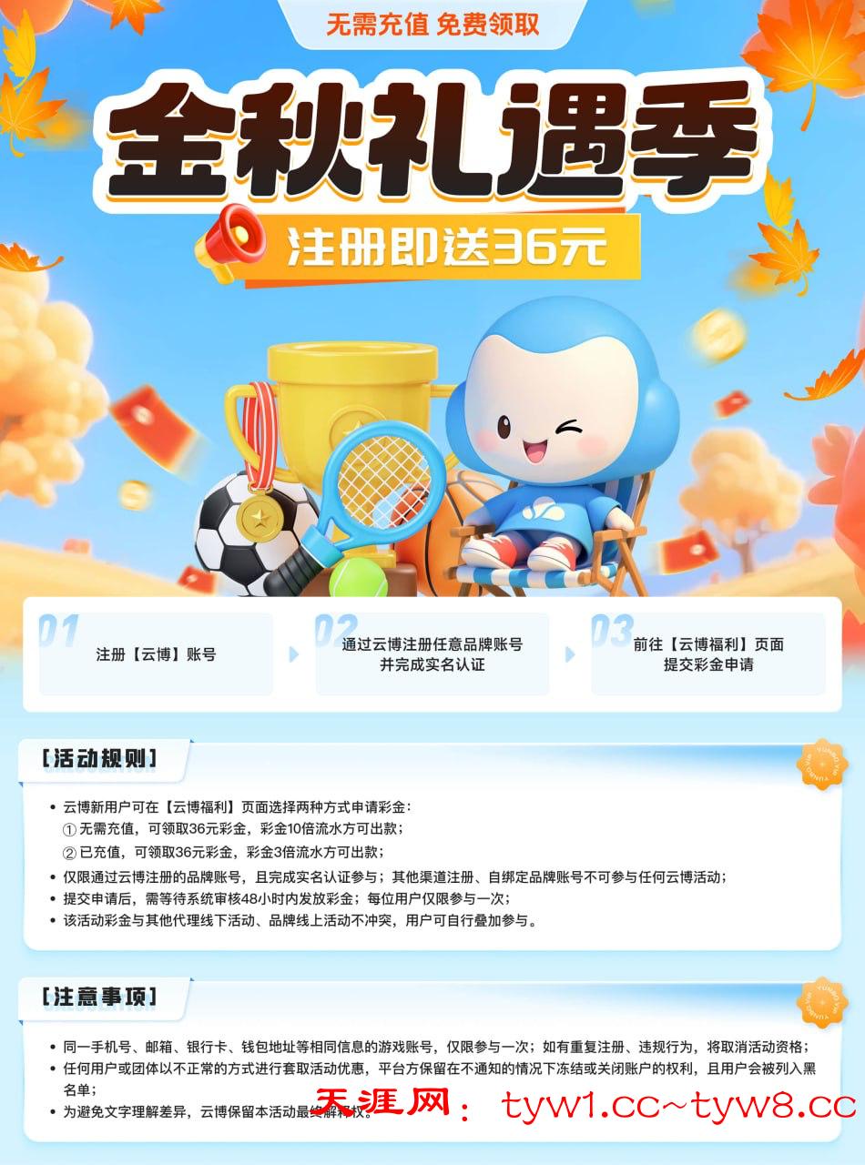 https://yb2886.com/ 送的36彩金是要48小时内到账的,没弄过博系的老哥可以弄一下,可以先注册领取新人16彩金,然后等36彩金到就行了,48小时