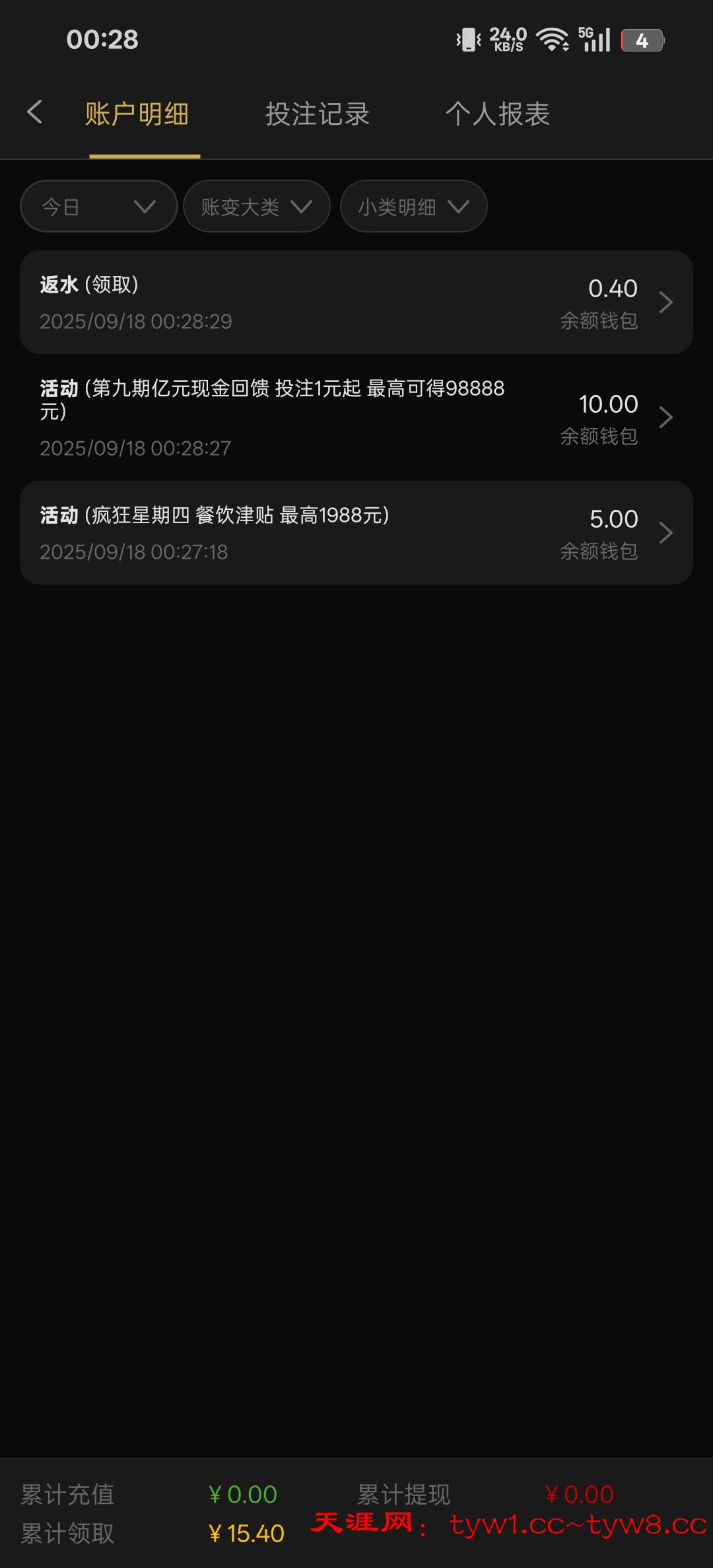 回馈彩金,期间有打码就可以领取
