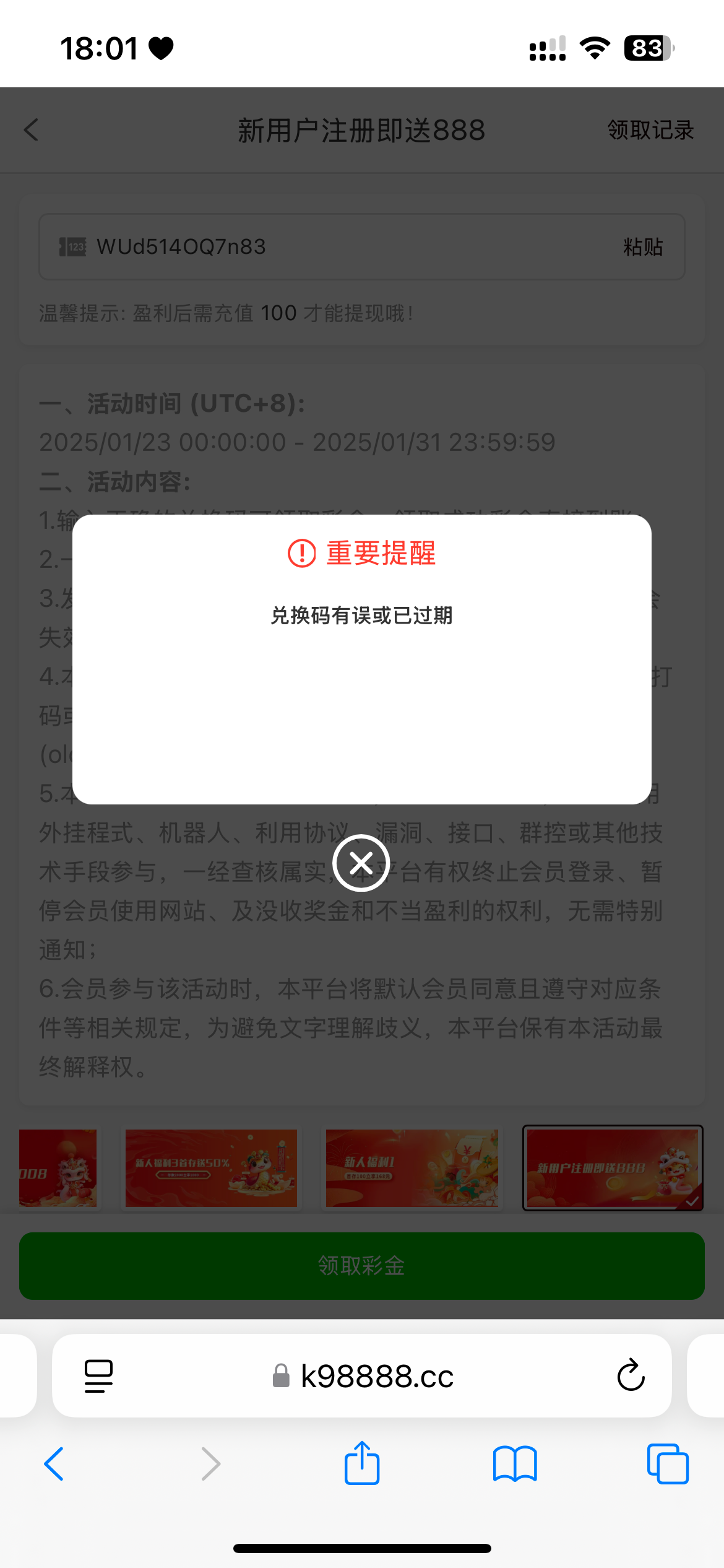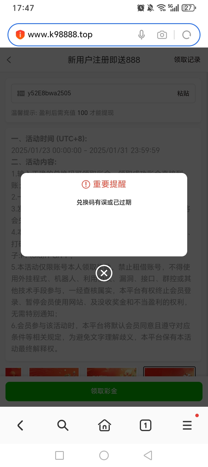 撸彩的100w 过期了