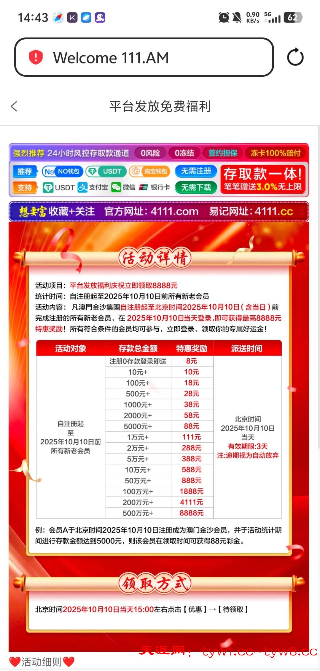 地址:111.am 10号之前注册过最低有8,其他自己看图,三点开始派送,我之前自己玩的台子,勿充值