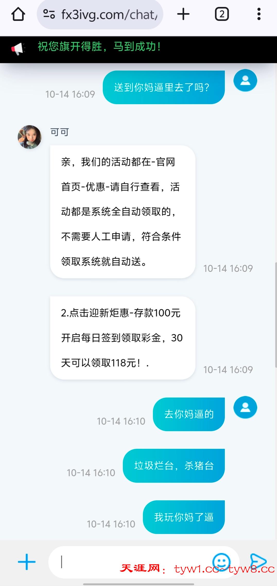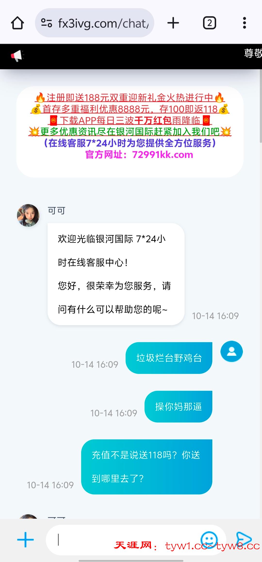傻逼贱客服打电话过来说充100送118,结果充值了之后半天没送直接去玩pg跟假的一样100空98次直接鲨完我操你妈逼的野鸡烂平台黑台银河国际72991