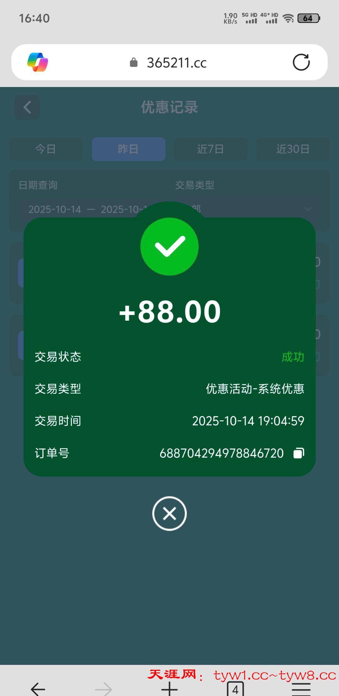 送88链接365211.cc,昨天打的电话,5水我刷完流水等了一会,一直处理中,我以为又是黑台子没去管,刚才看到账了,去碰瓷看看吧,电话国内的