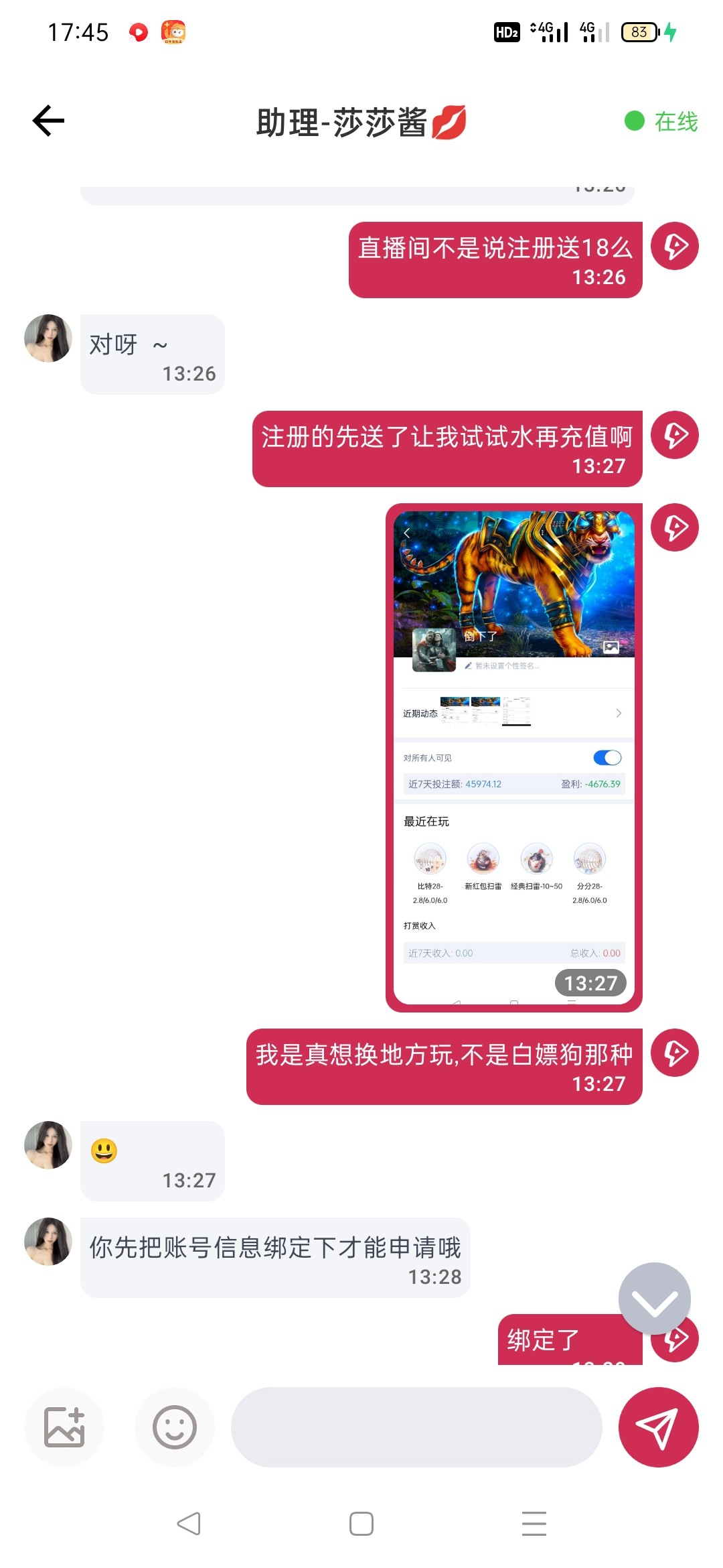 新年期间直播间找直播客服注册送18,5倍水我没打出来,好运老哥去试试.