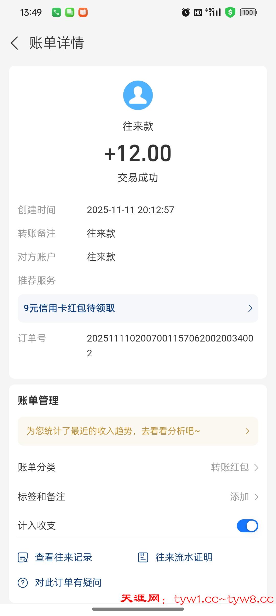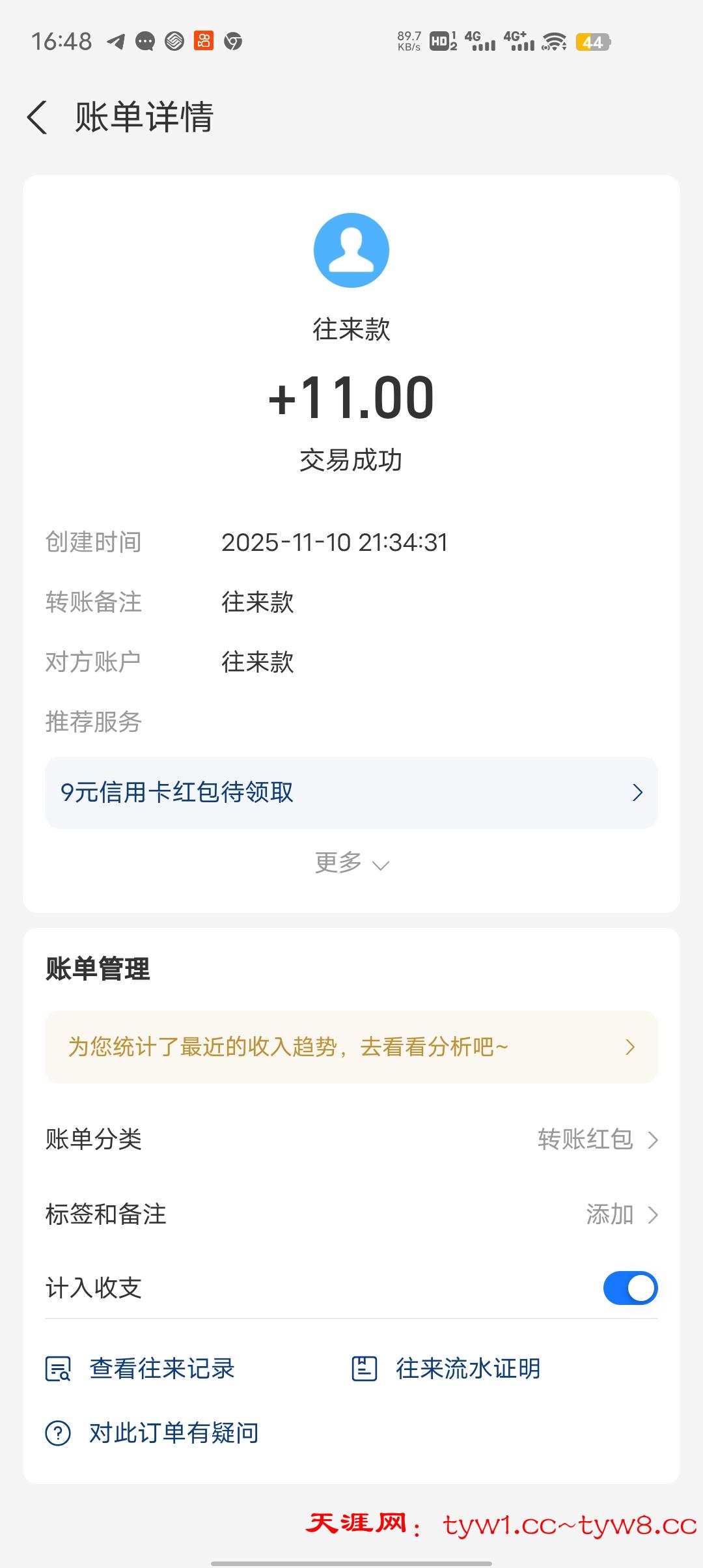 11.11两个红牛到账
