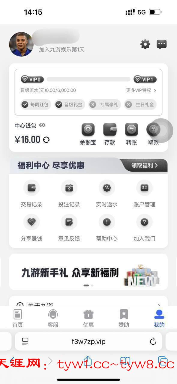 新人完善账户彩金  送16新用户注册绑卡绑定手机号,福利中心自助领取,这个系列看脸,几率下款,有没注册的兄弟去试试吧!