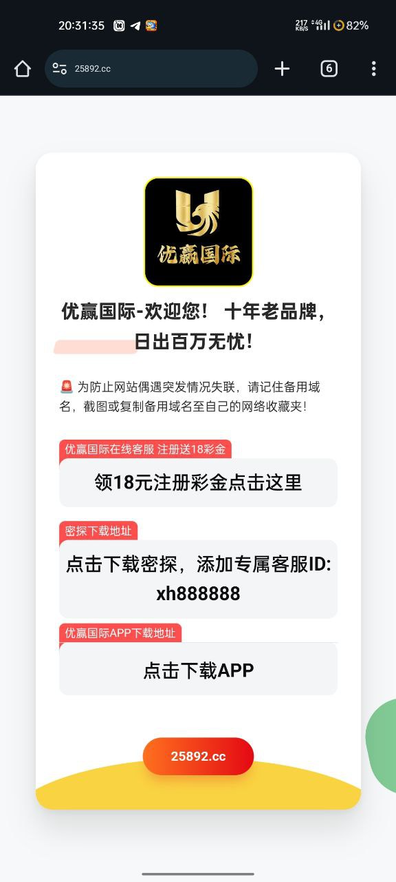 找客服报手机号,给注册链接,送18