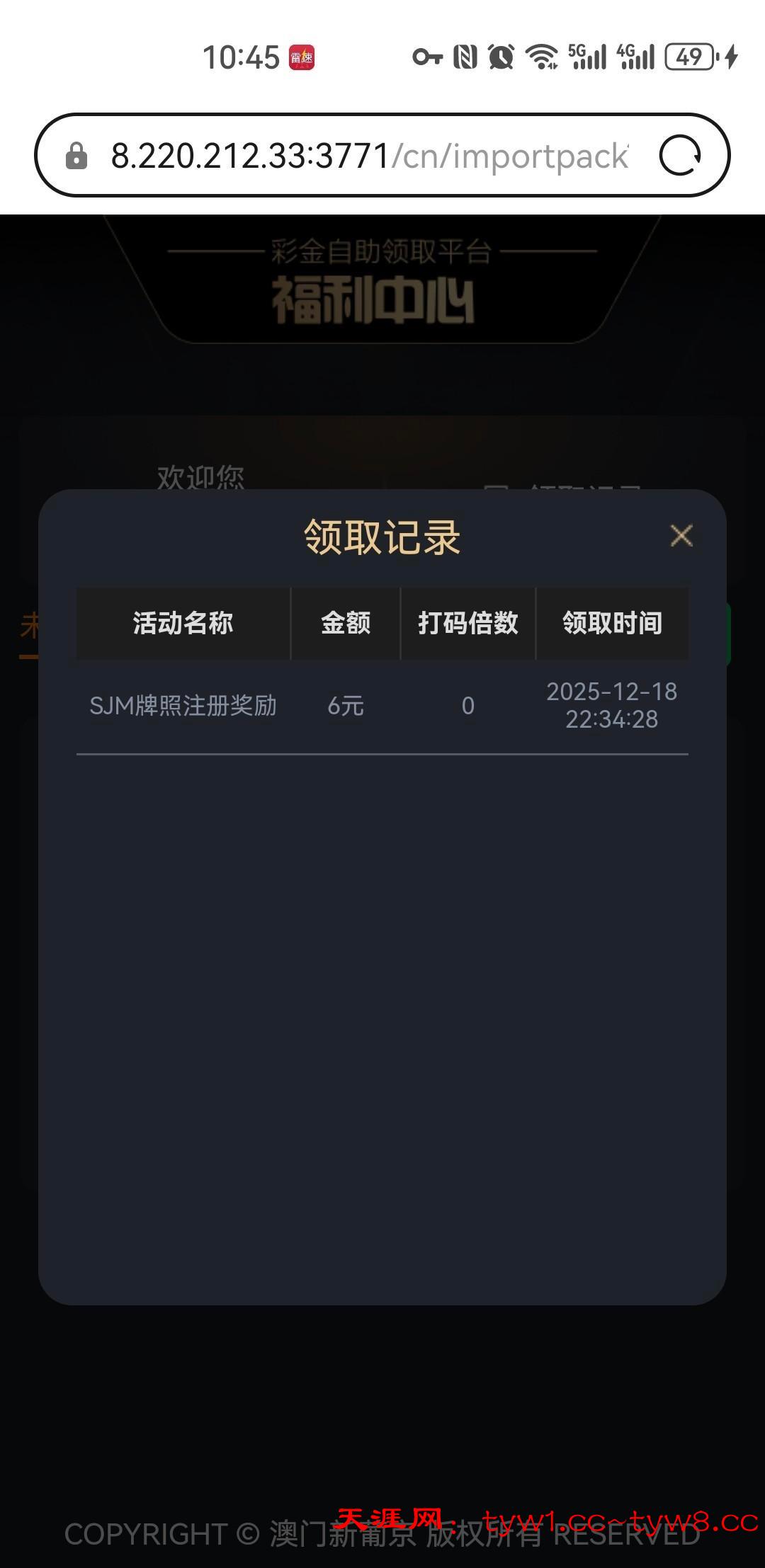 历史存款100+ 点我的底下自助彩金手动领取,我领了6块
