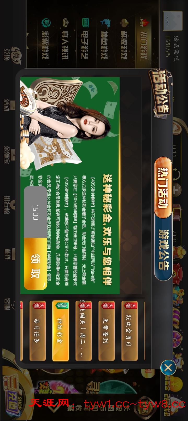老台子了登录活动里面神秘彩金领取以前充过,好久没充值过了我v3的号才15