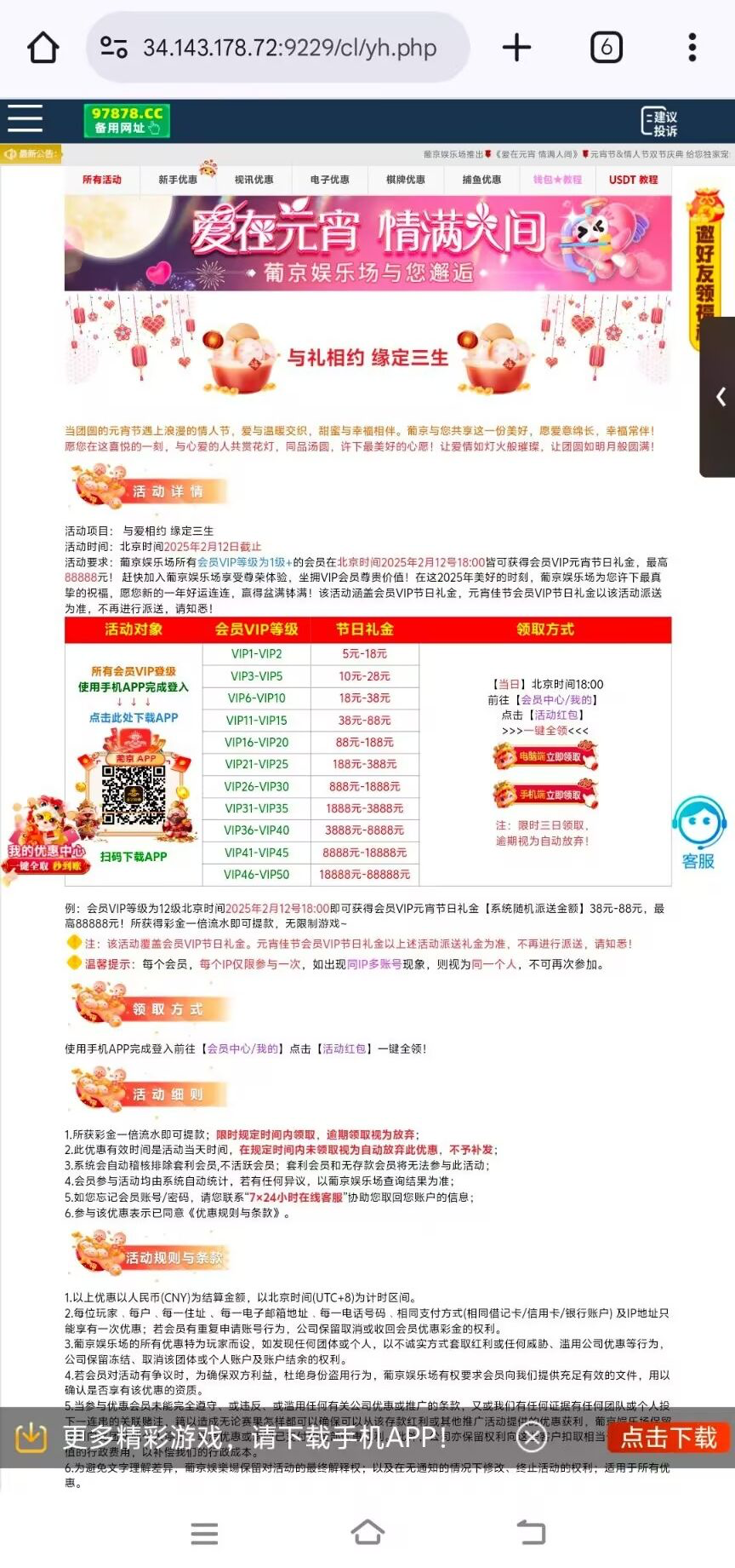 2月12号18点可以领取元宵vip礼金