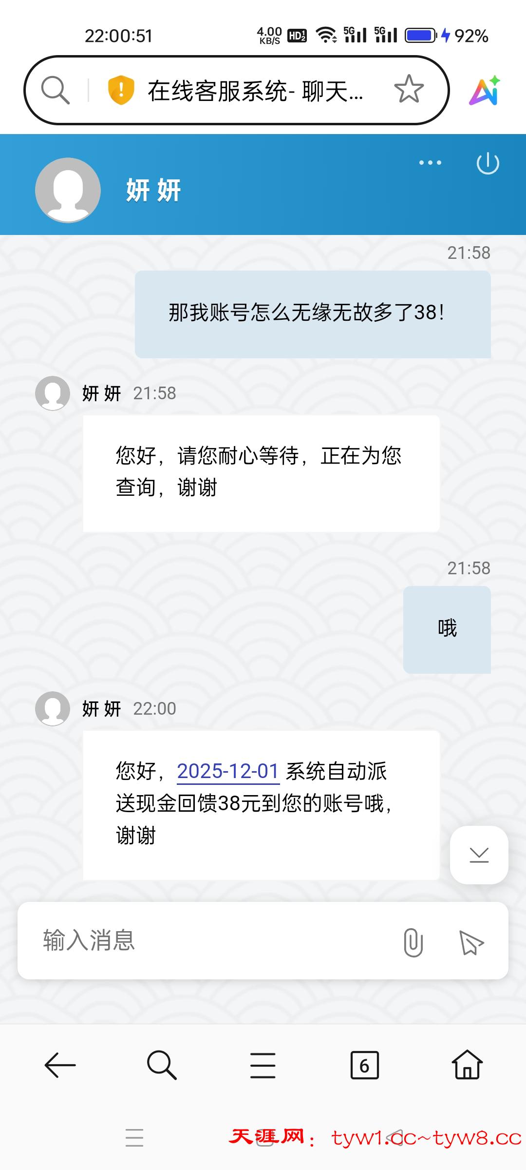 3217聚财网今天上线看了一下,送了38是12月1号送的,问客服客服说是回馈的,我充过100有回馈,得吃100