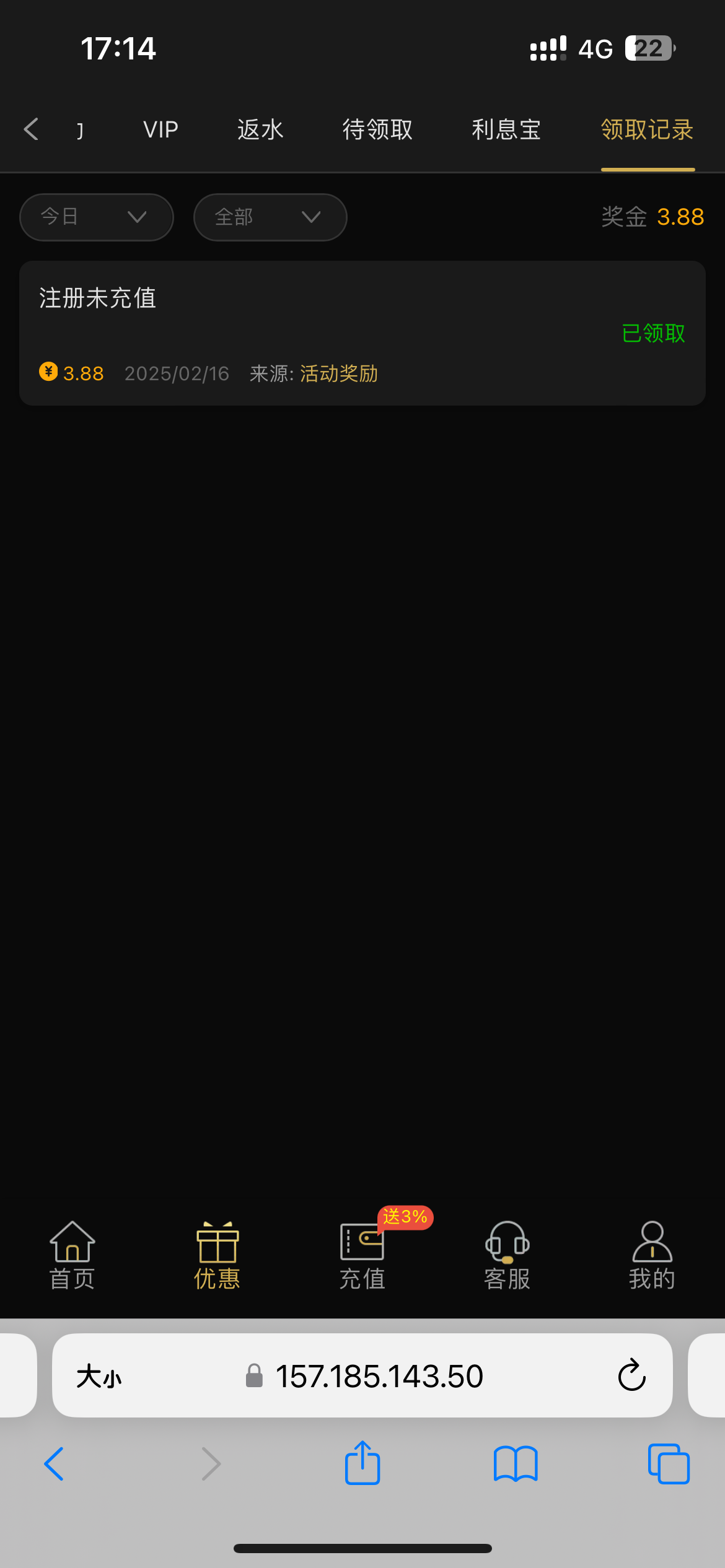 我是登陆就有优惠里面 没有充值过给了3.88