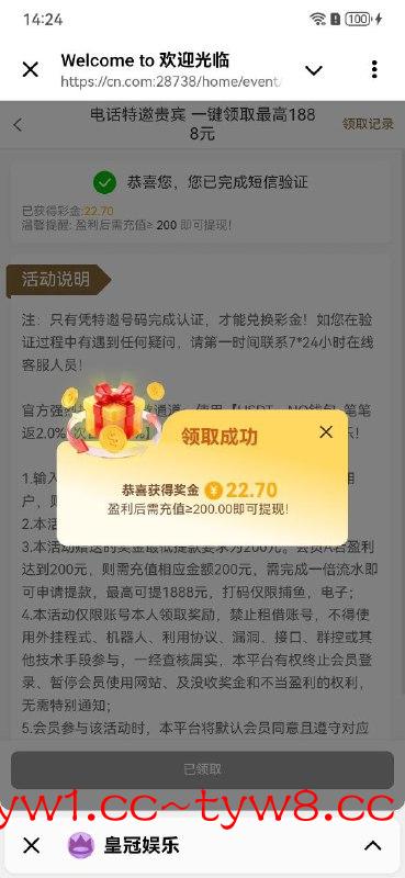 注意事项:注册绑定信息在优惠里自助申请,介意无视。有就有没有就无视! 不建议充值 黑款自行承担