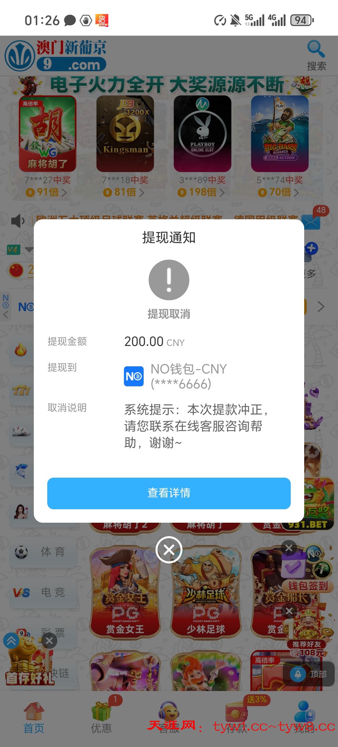我刚才在7030澳门威尼斯人,18彩金赚403,提现不给出,让我充值403再打800多流水,我网赌10年了,我真想戒了,太恶心了,想想以前几十分钟输好几万,就是傻逼一个