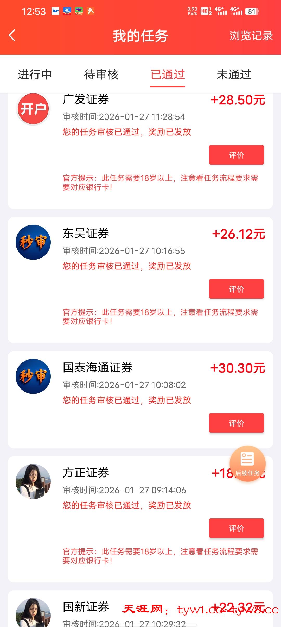悬赏平台证券开户任务30左右一个,一人可以整十个
