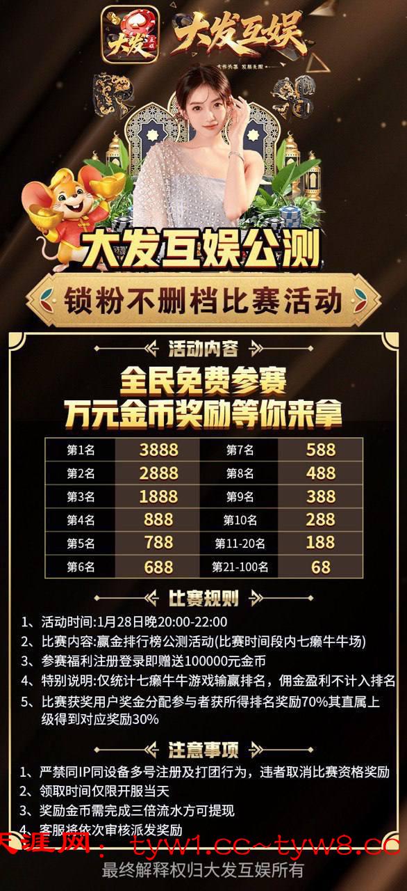 5.七癞牛公测比赛改为七癞牛正式比赛,第一名3888保持不变,其余凡是上榜皆有奖励。