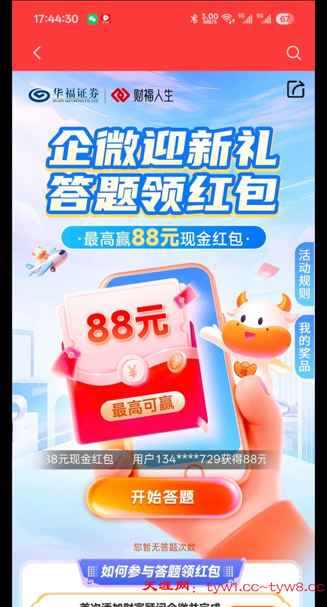 【华福证券答题6.8红包】