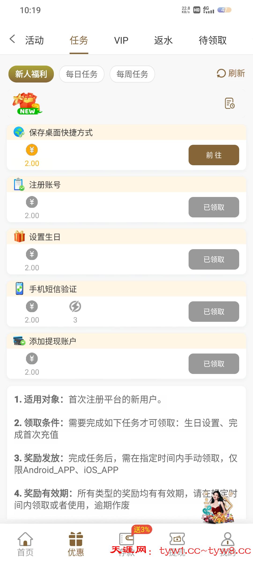 注册绑定好支付宝充值10领取就行,提款已到账