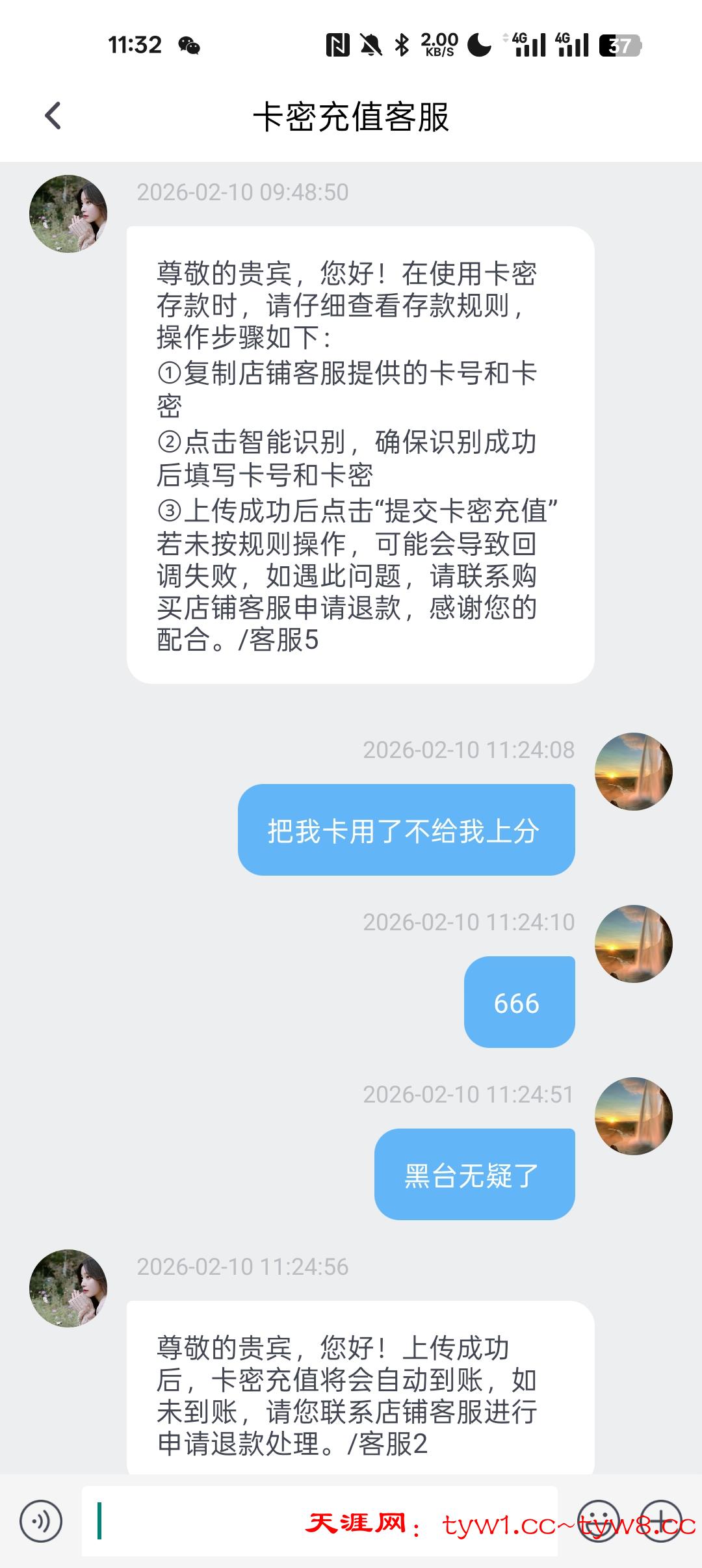 保时捷平台,连50块钱卡密都要黑。24分下单提交卡密,25分被用了。等了好久都没见到账,问了客服,发截图给他居然不承认。还让我找店铺退款。
