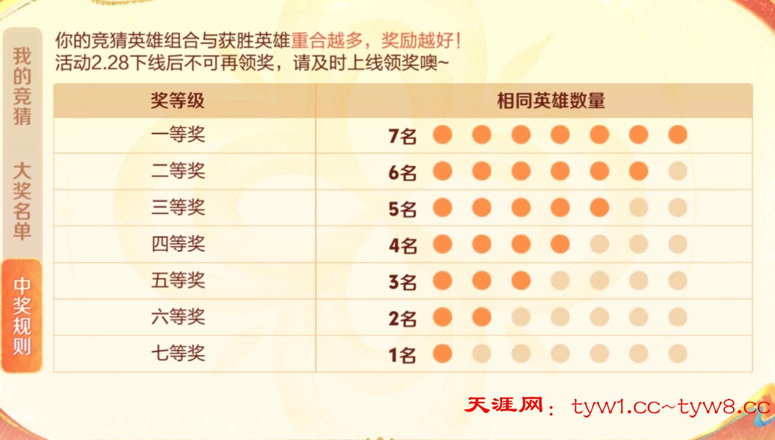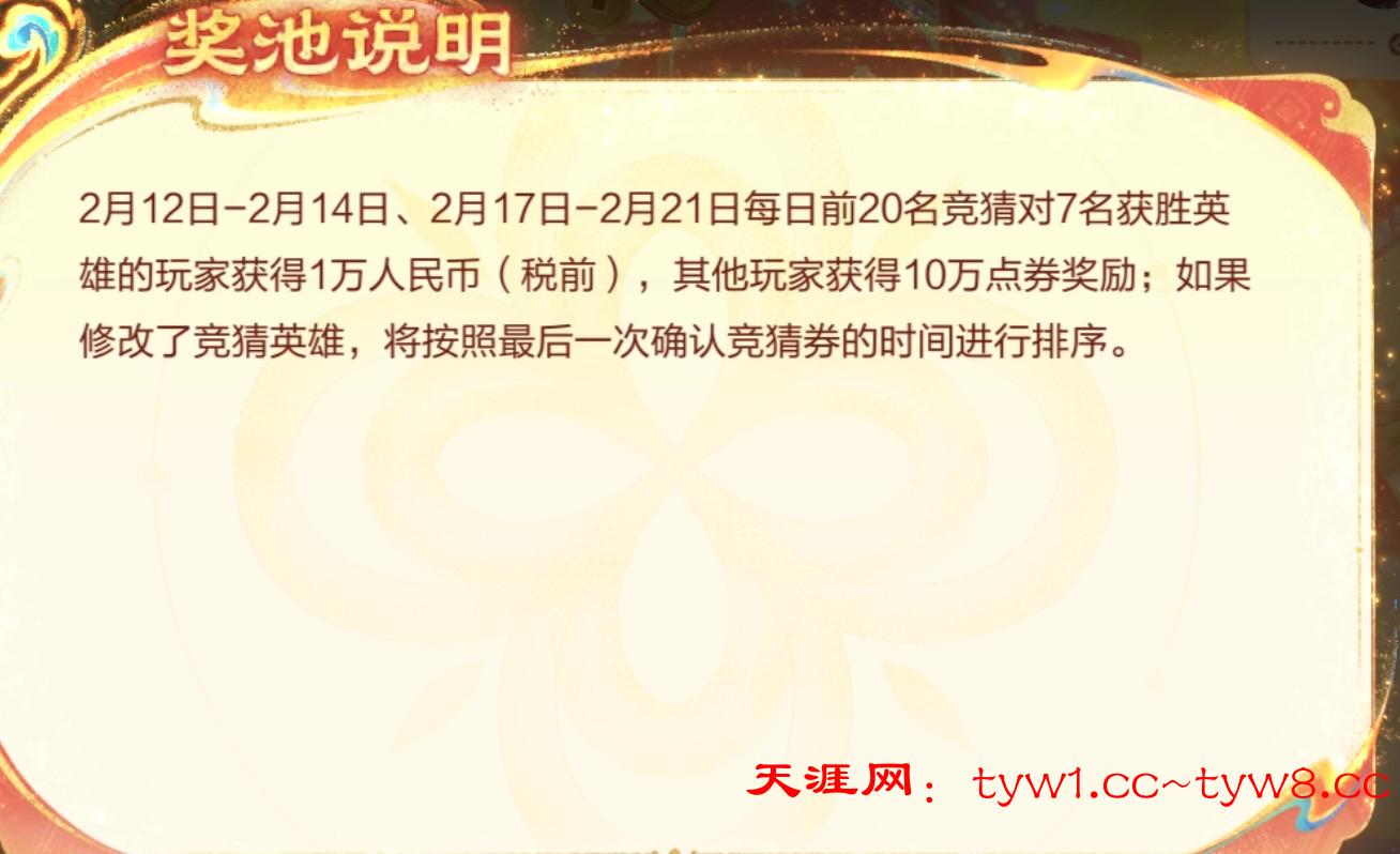 王者荣耀从36个英雄里面选7个英雄,如果选的7个与开奖的7个一样,前20名奖励1w现金,多号竞猜即可,万一中了呢?撸了不一定有,不撸一定没有!