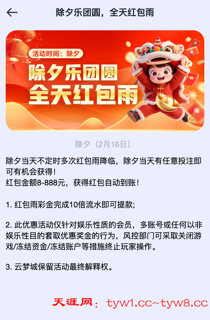 【Coc云梦城x 天涯社区】5888除夕福利-抽奖中! 已开奖