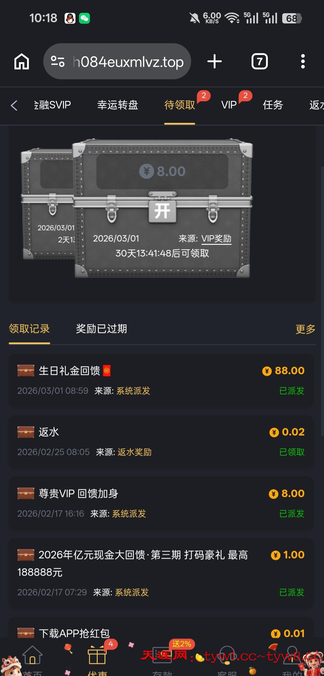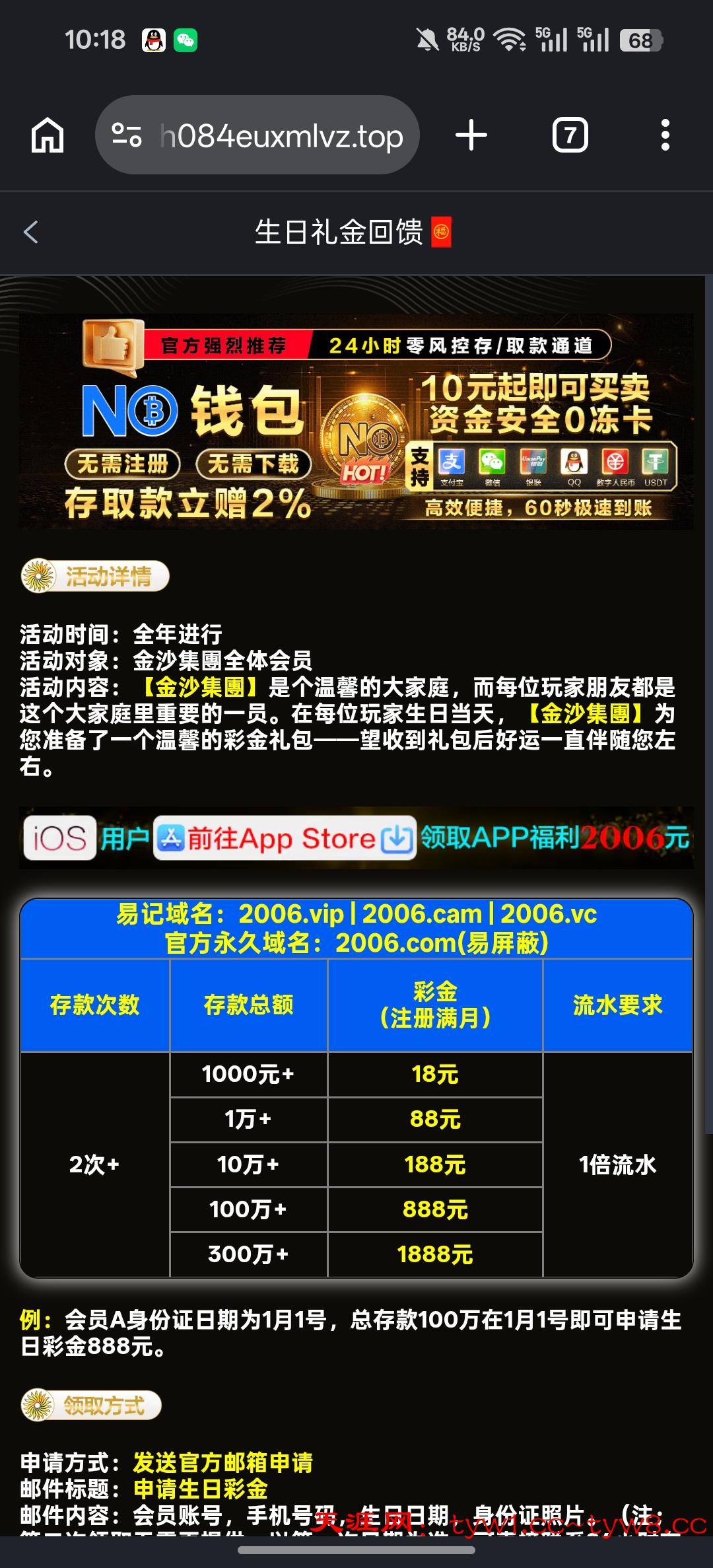 然后优惠找到生日彩金发邮箱一会就到了,需要充值过了老用户