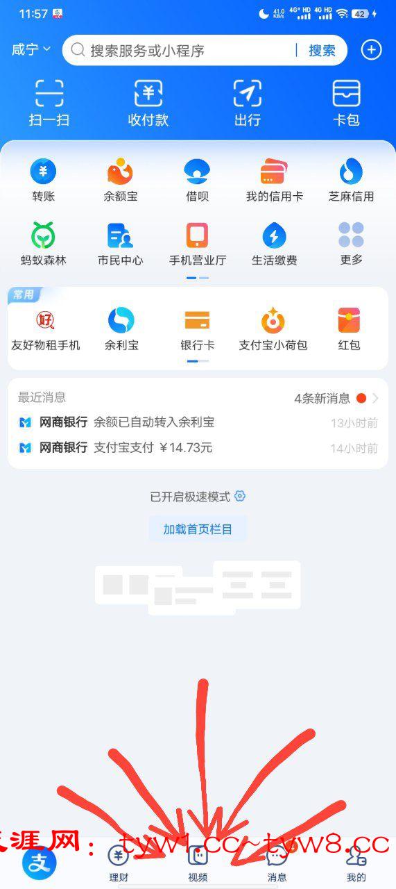支付宝下面有一个视频