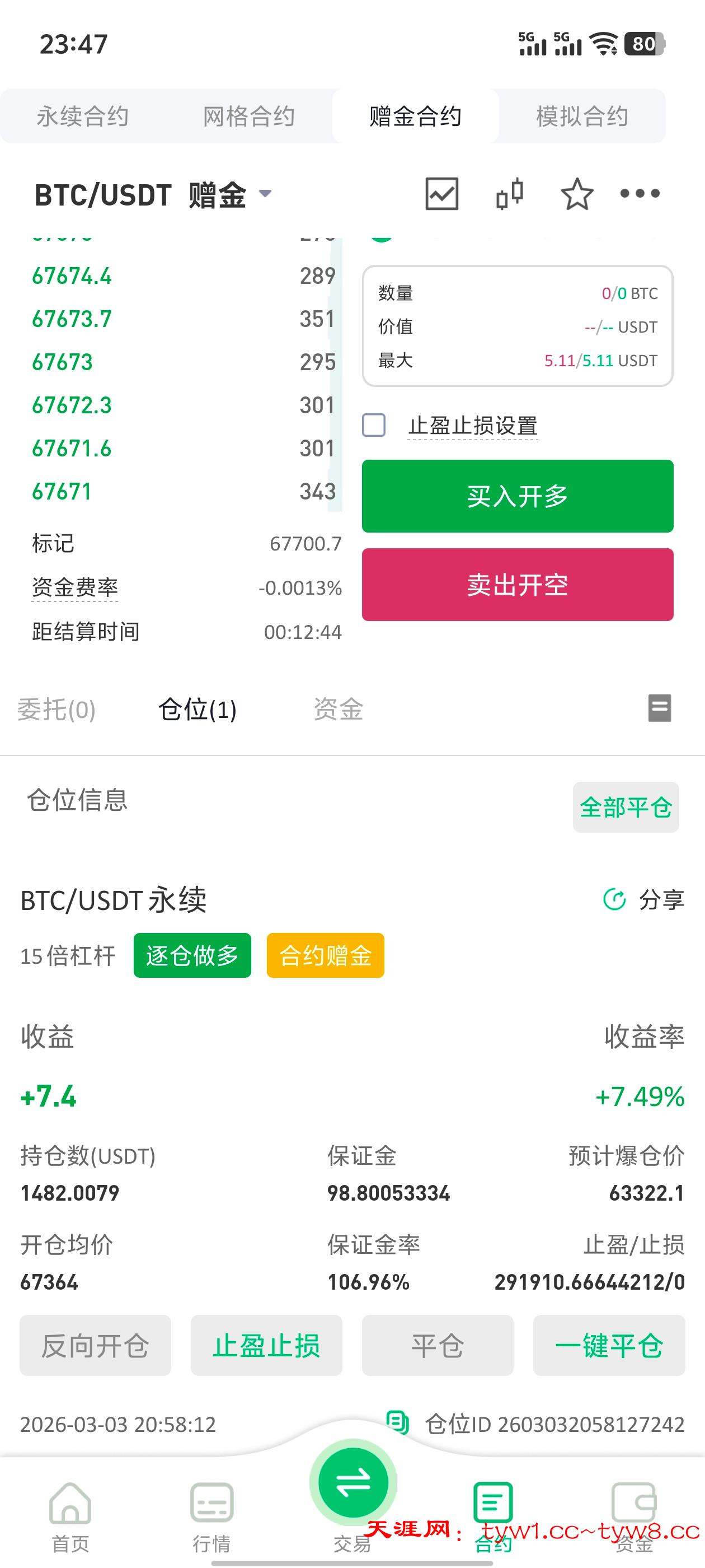 得吃100u,早上做空,本金干到160了,下午买比特币得吃