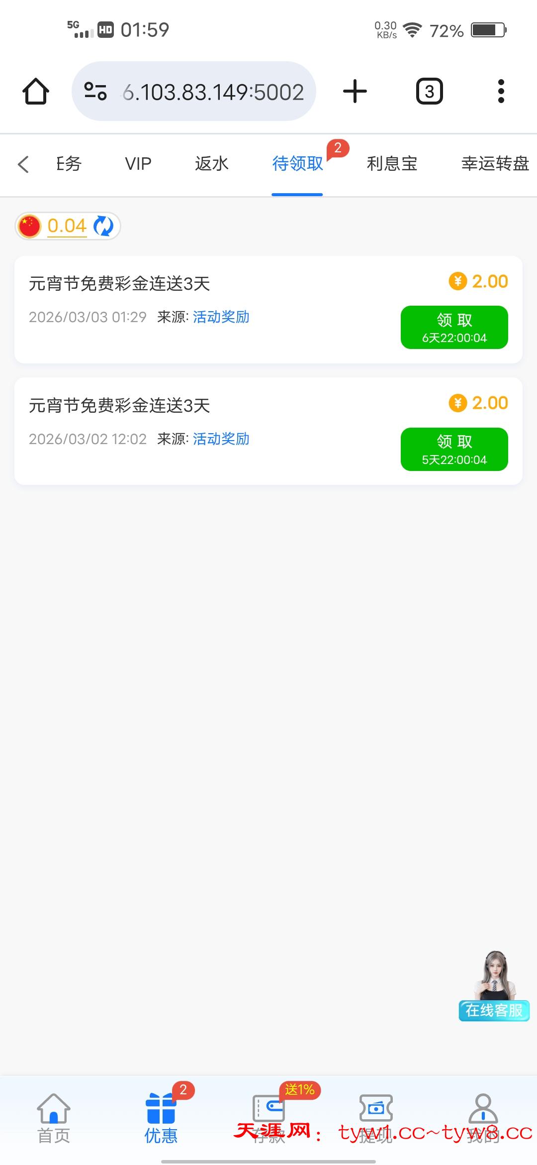 有充值过的可以上号看看,连送3天,彩金多少好像是按照vip等级来的