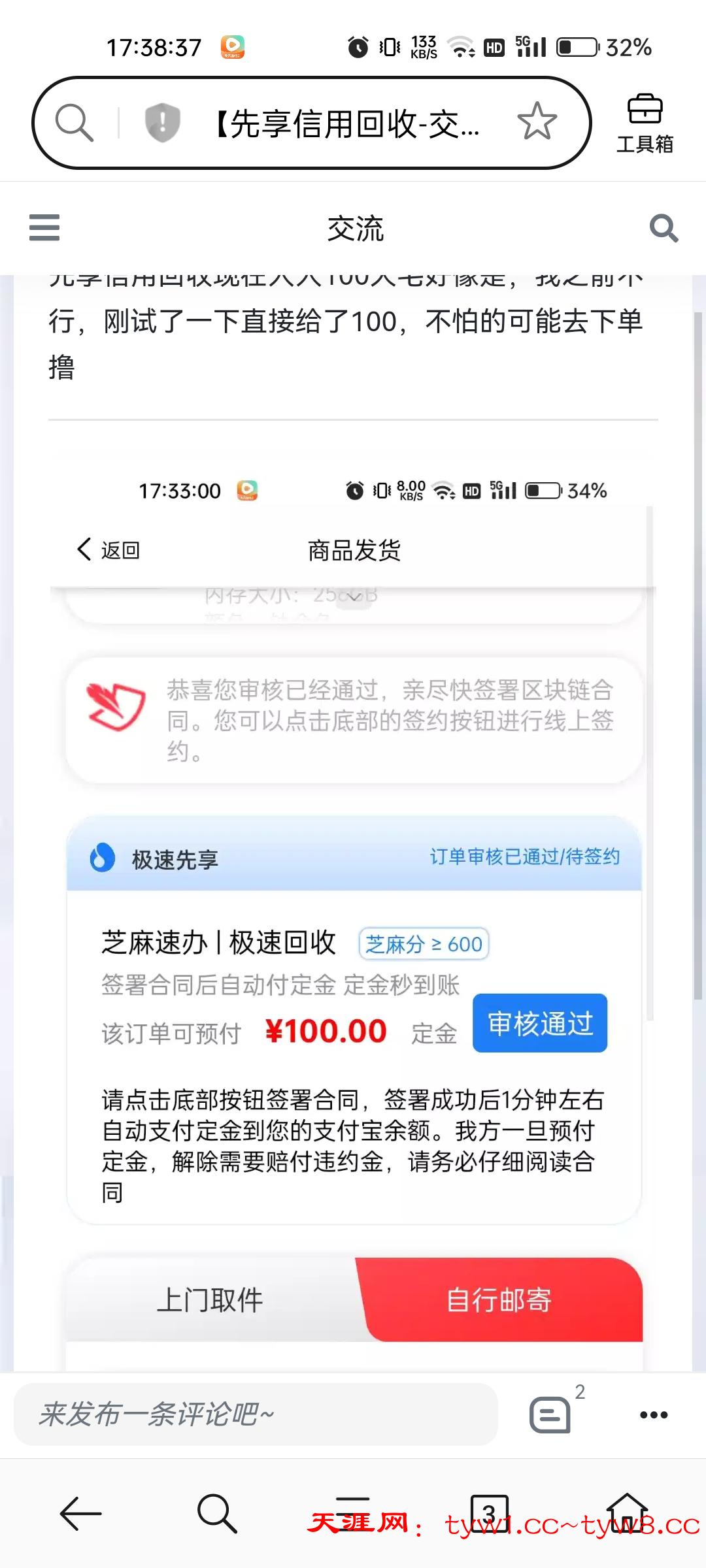你这回收的是啥,手机?给100定金是吧,