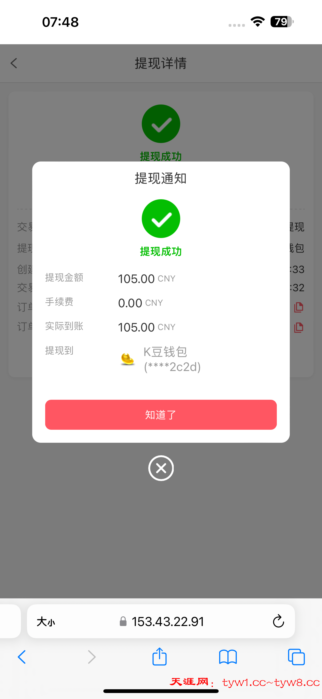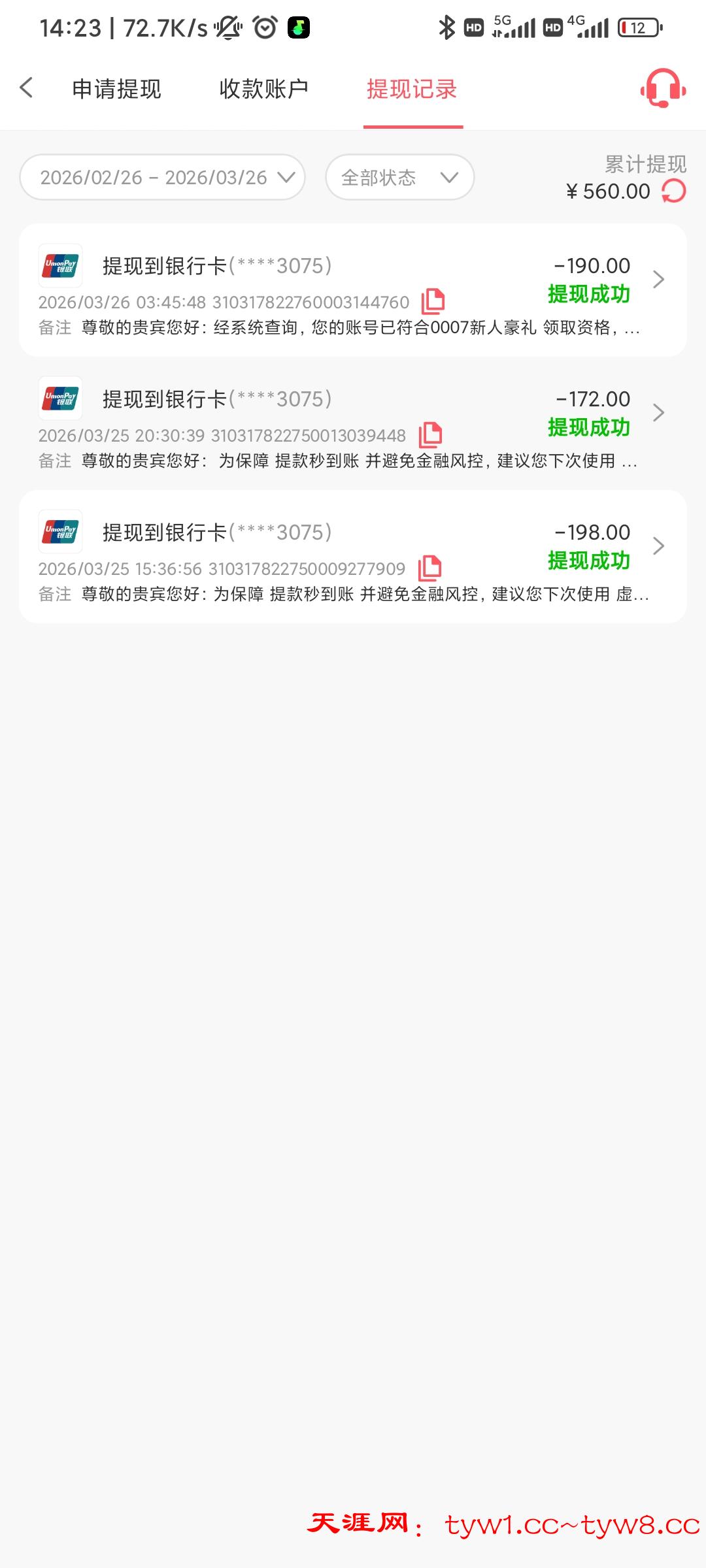 提现不到十分钟就到账,感谢