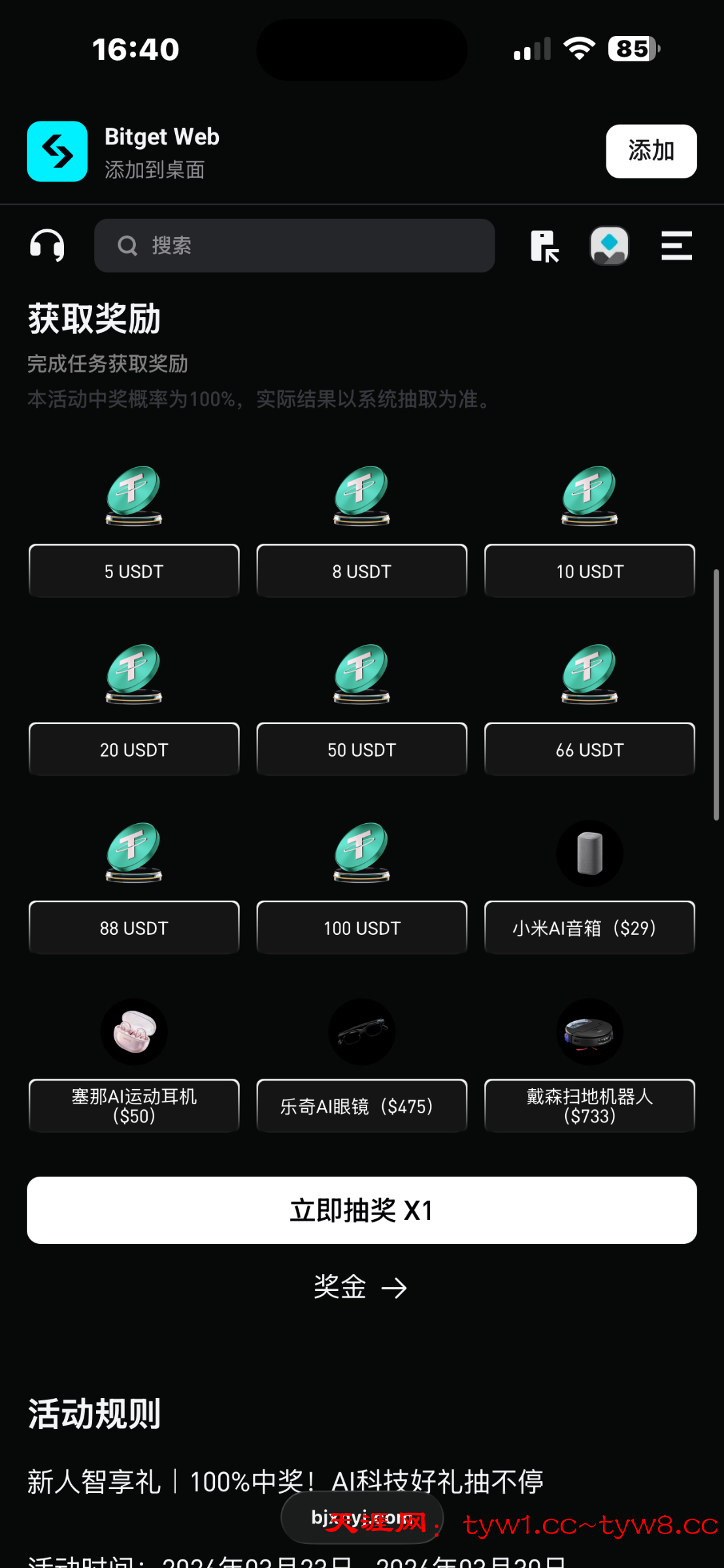 过一会会给一次抽奖机会。 抽奖是百分百中奖。
