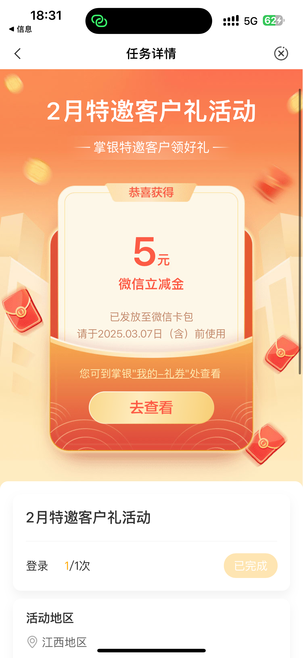 【中国农业银行】掌银客户专属回馈!即日起登录农行掌银,领取5元或200元微信立减金,每人限领1份,先到先得,2025年2月28日前有效。戳(go.abchina.com/k/Cg2)领取,转发无效,谨防诈骗。详询95599,拒收请回复R