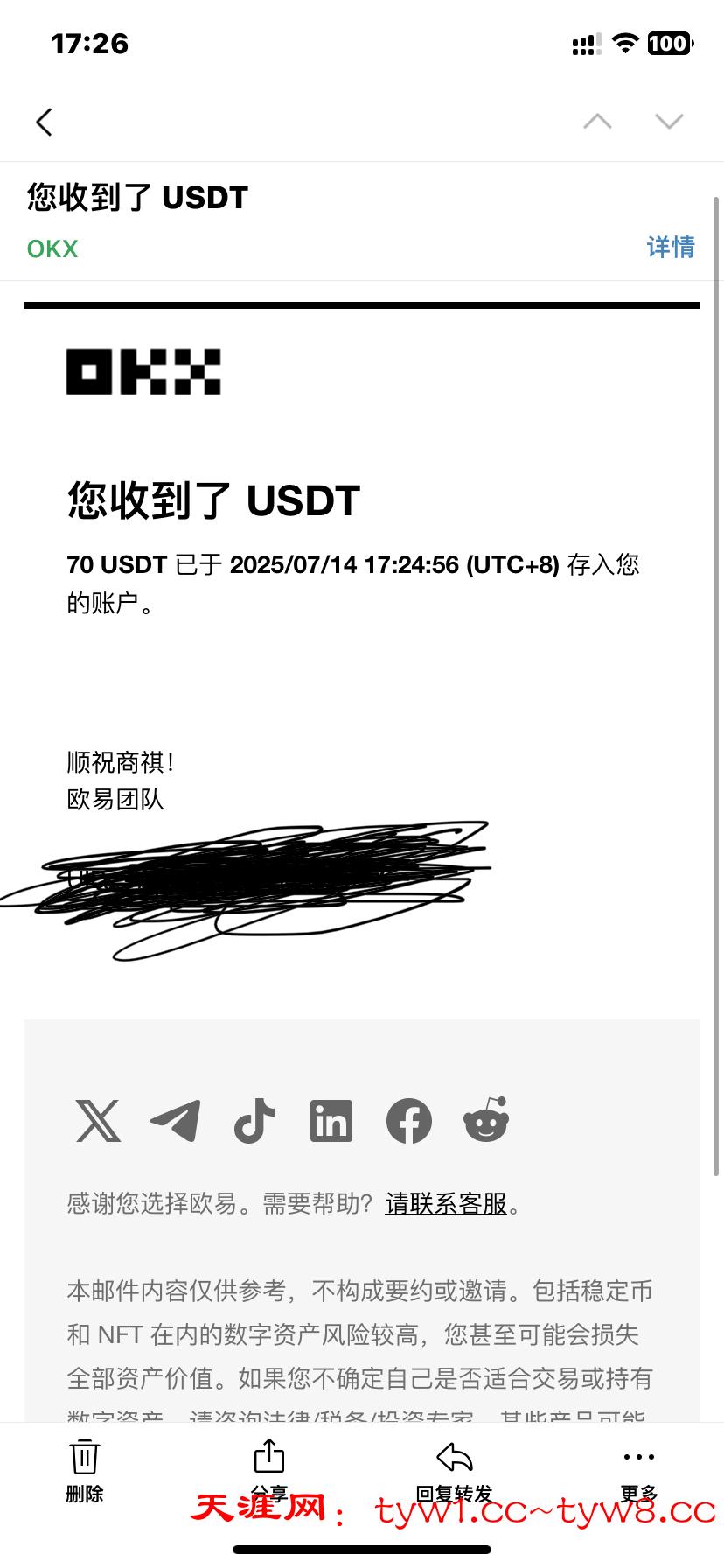 返现到账,感谢天涯