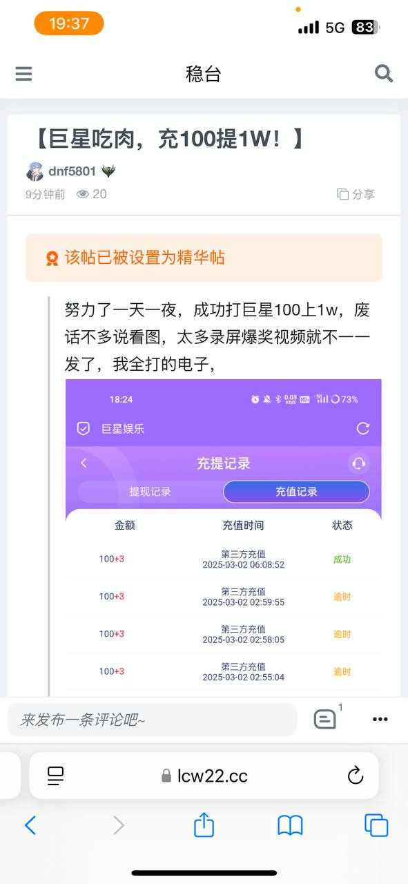 活动④爆大奖提款了 在此贴评论 附上中奖截图