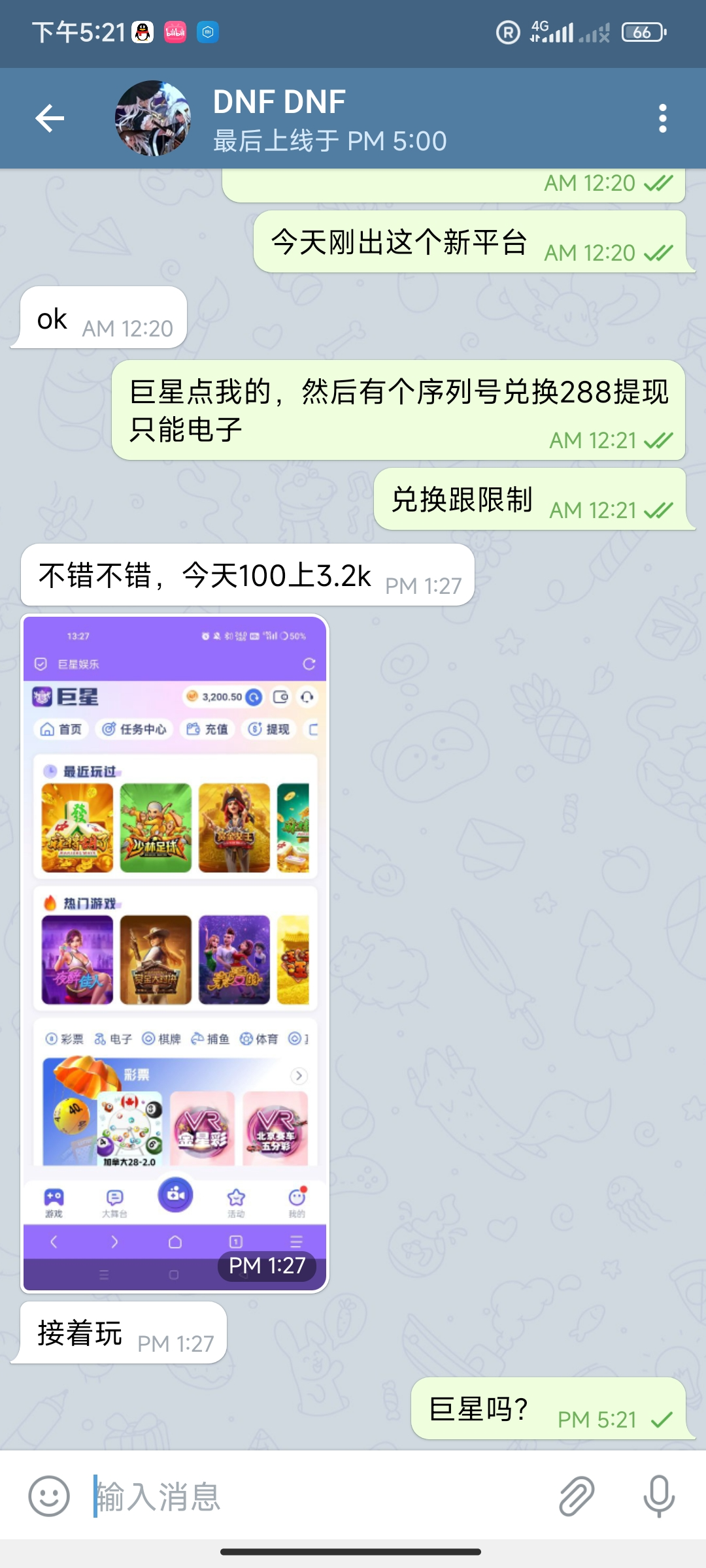 反馈,巨星1+1打到1000,夜里12点提款说财务结算时间要到12.15分提,又打到1700分两次提款已到账,没有为难我,只绑定了k豆,良心台子